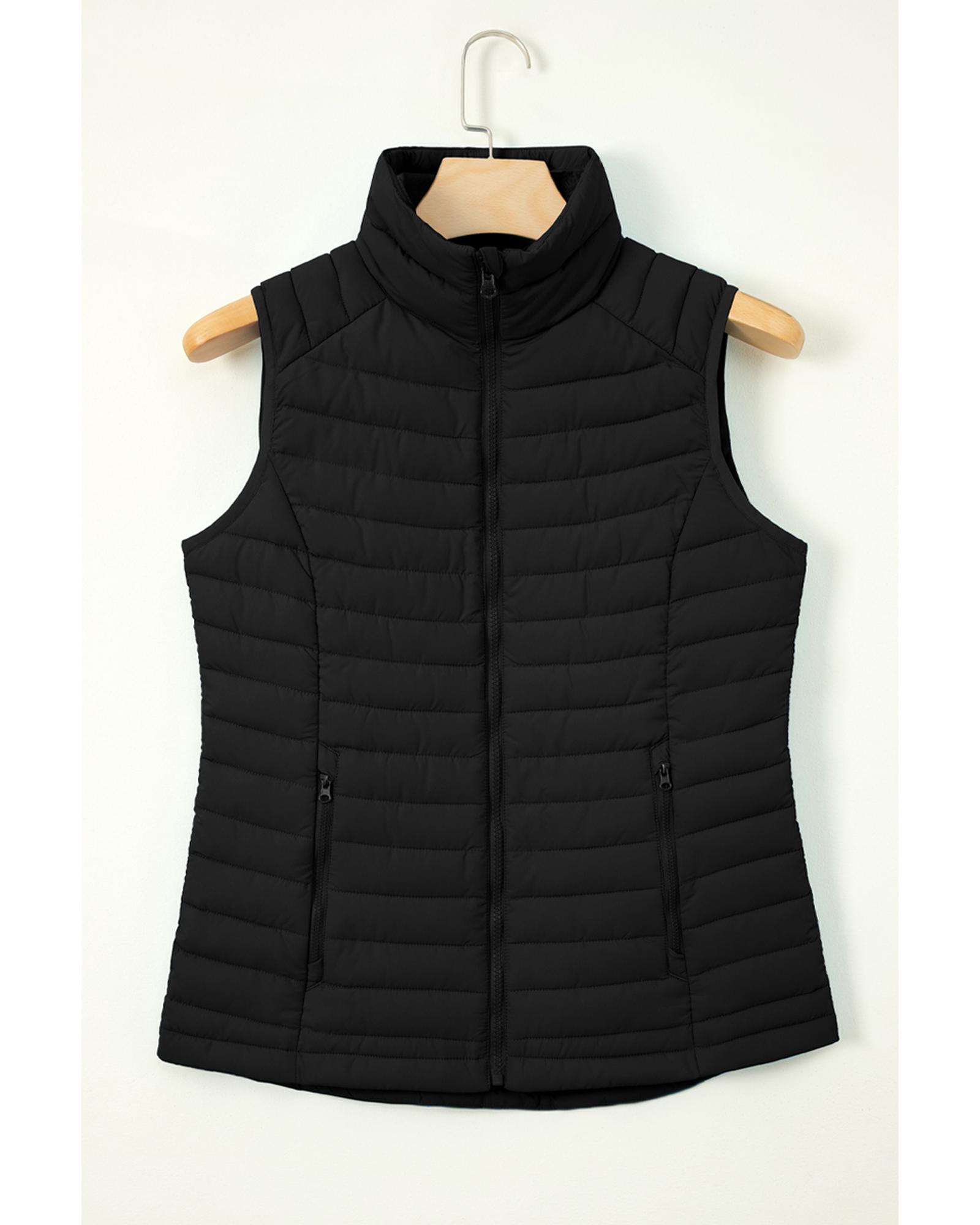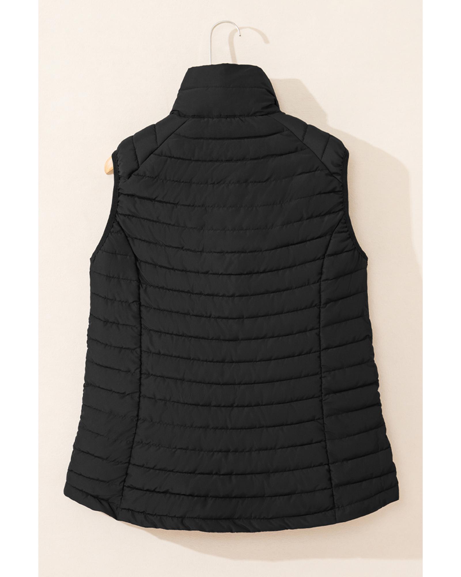 Black Plush Collared Quilted Zipped Puffer Vest – 2XL