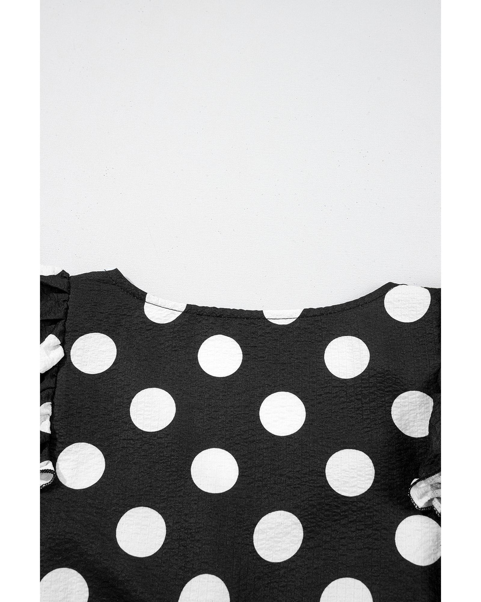 Black Polka Dot Print Ruffled Sleeve V Neck Blouse – L