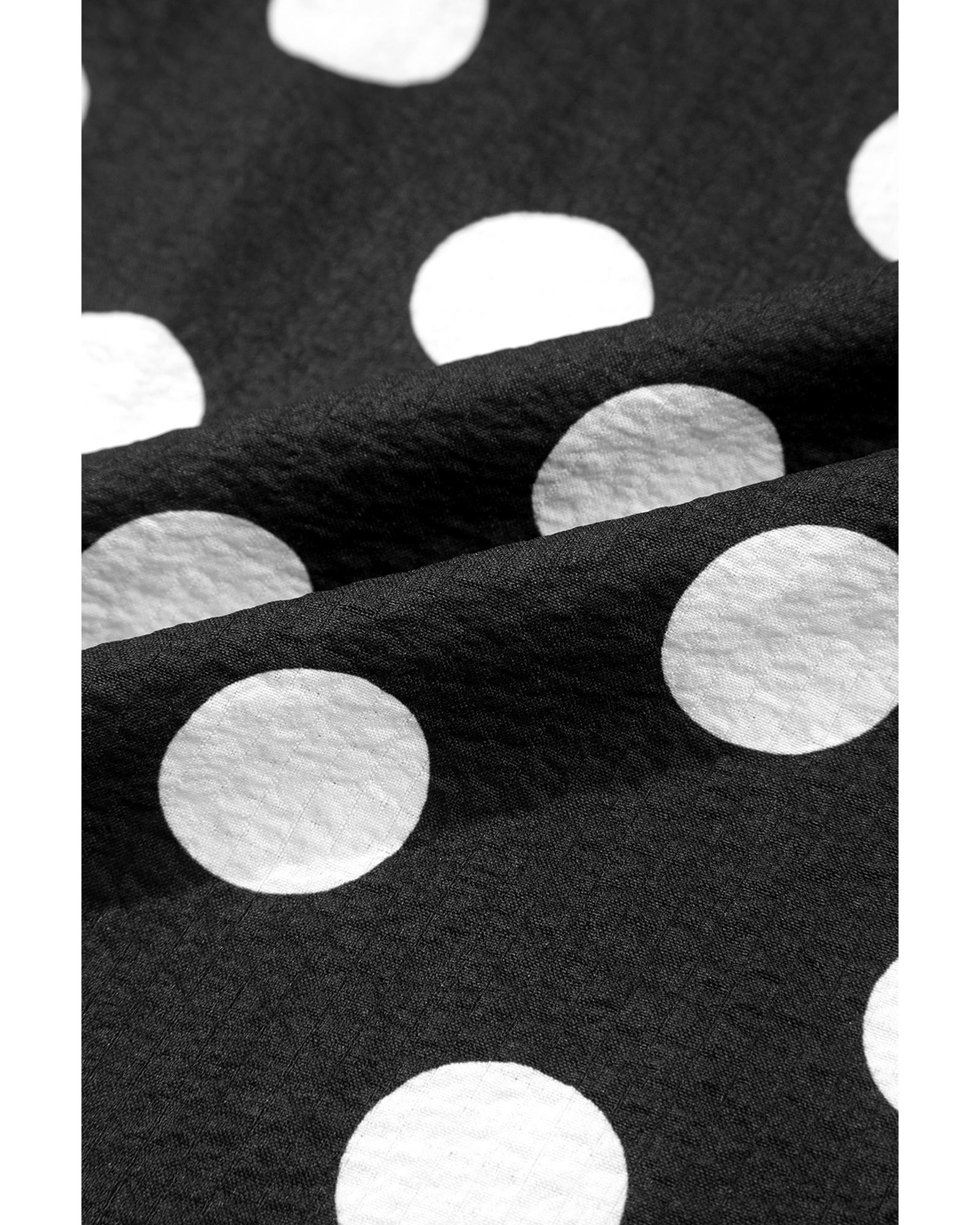 Black Polka Dot Print Ruffled Sleeve V Neck Blouse – XL