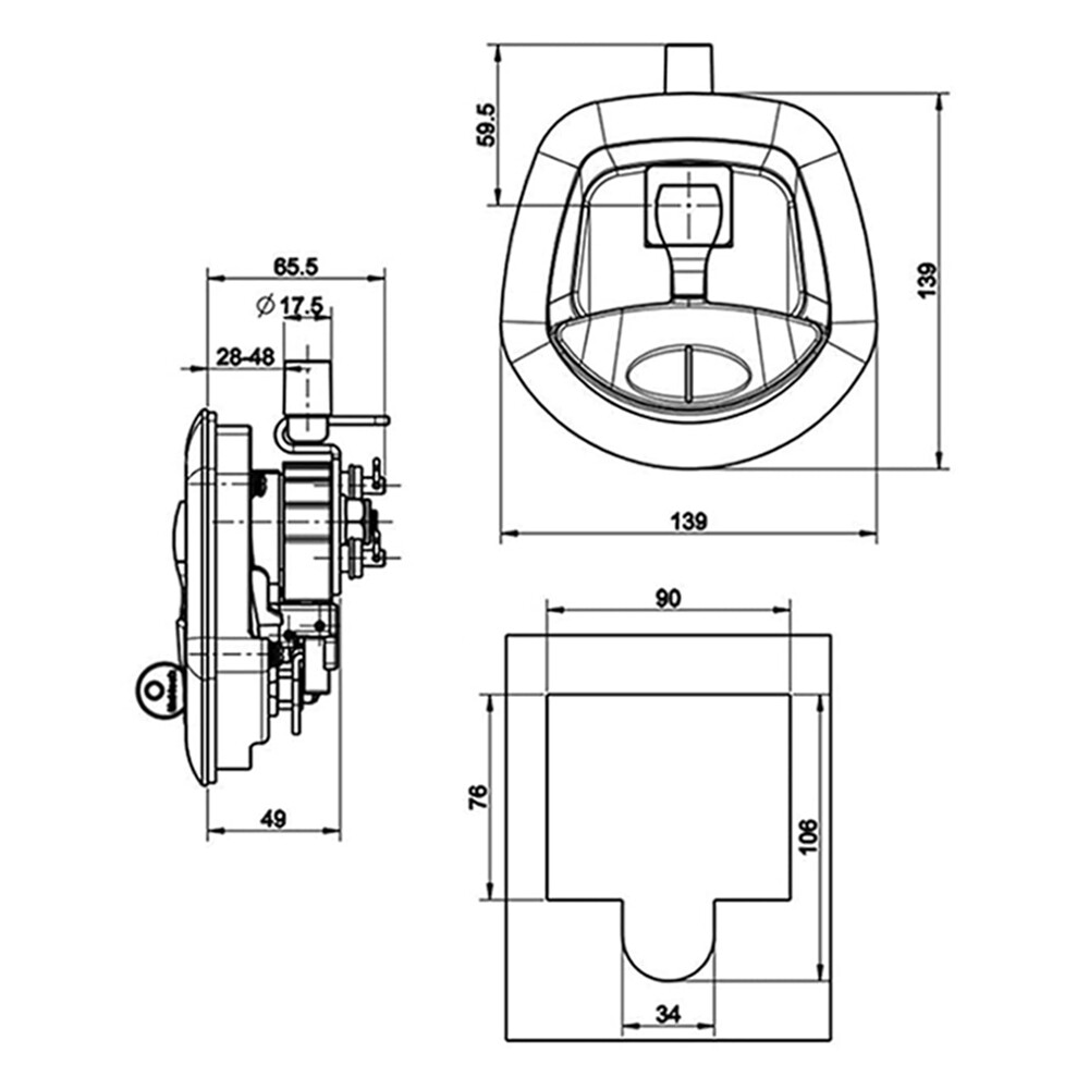 Black Power Operated Central Locking Handle Whale Tail Lock Recessed Folding 12V