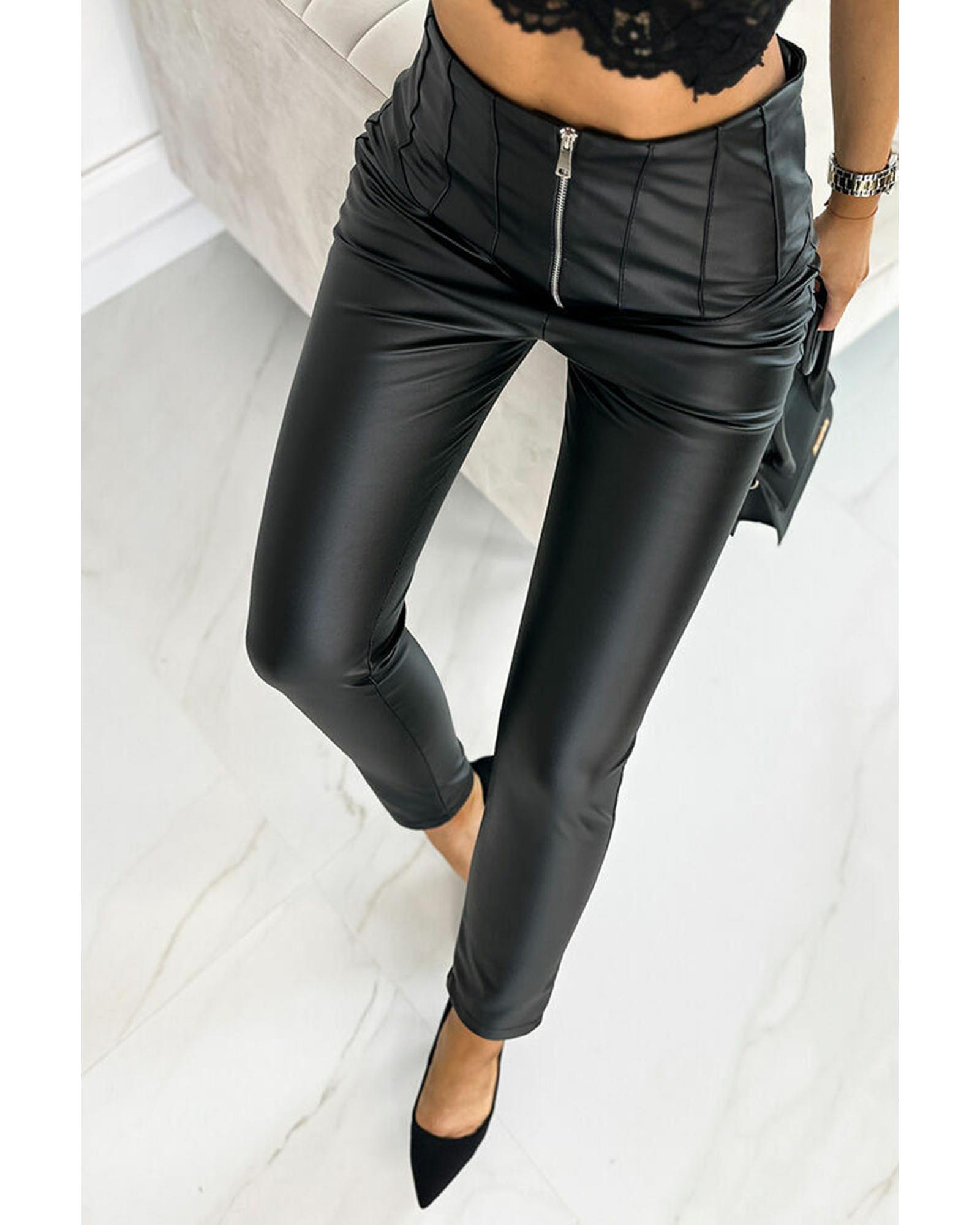 Black PU Leather Zipped High Waist Skinny Pants – XL