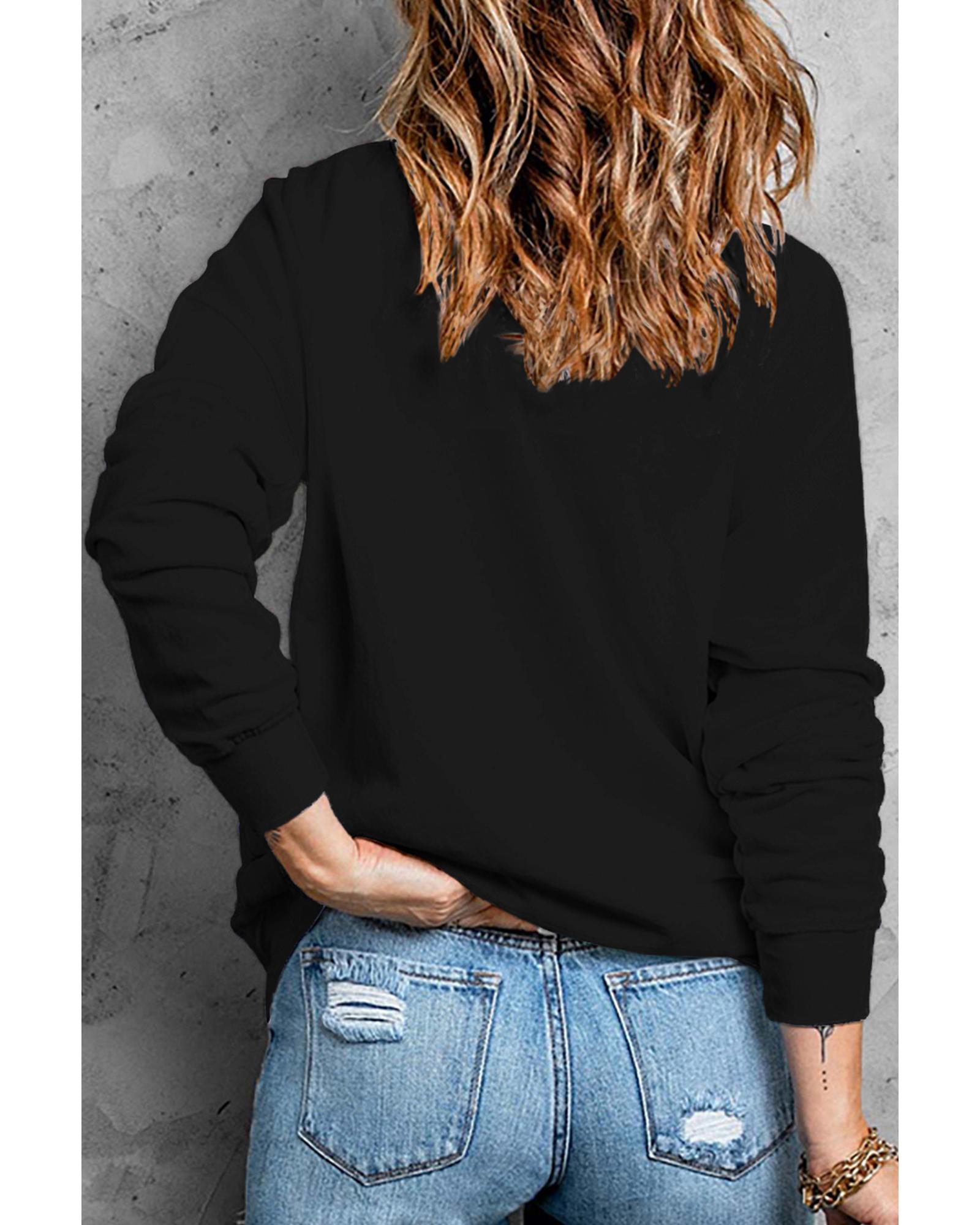 Black Glitter Ghosts Pattern Long Sleeve Halloween Sweatshirt - M
