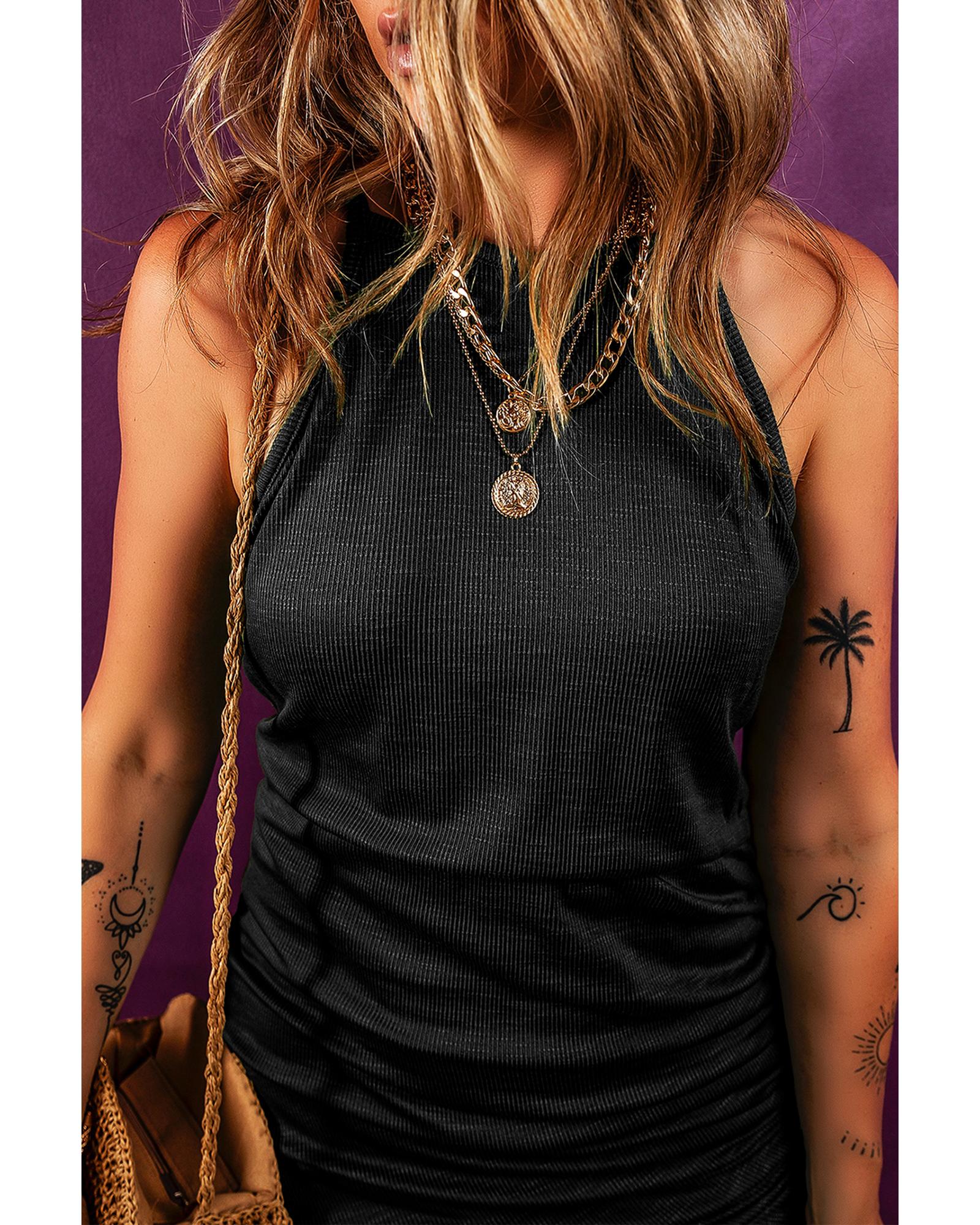 - Black Racerback Ribbed Knit Drawstring Bodycon Dress