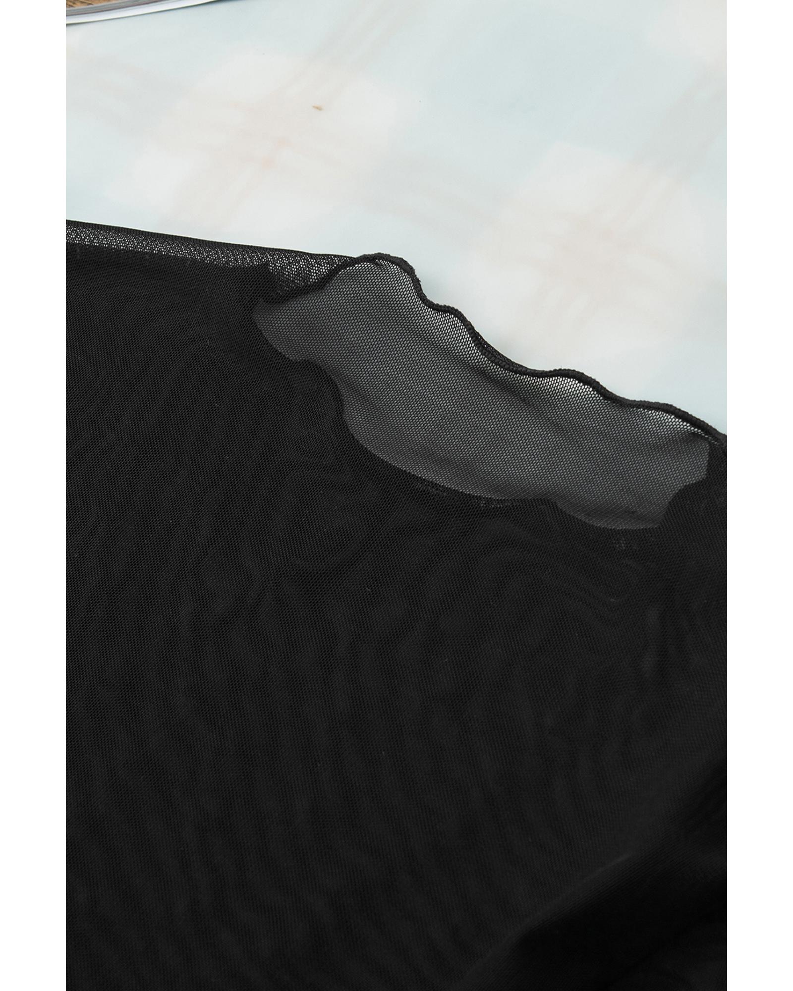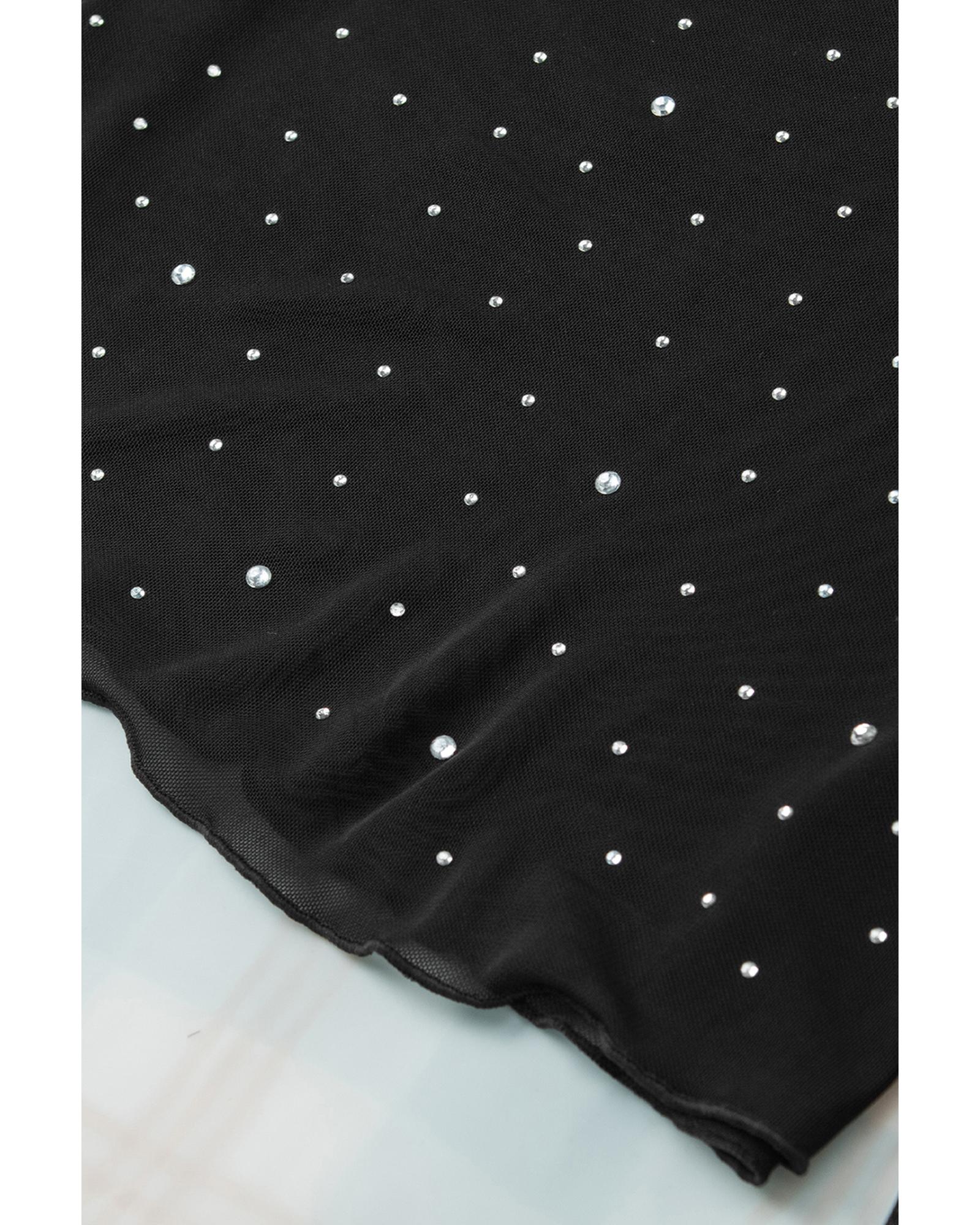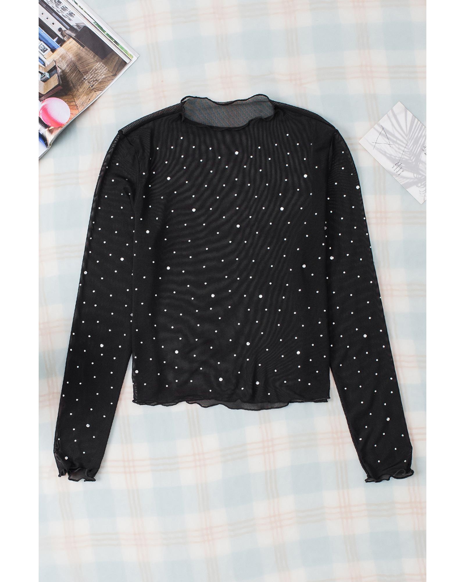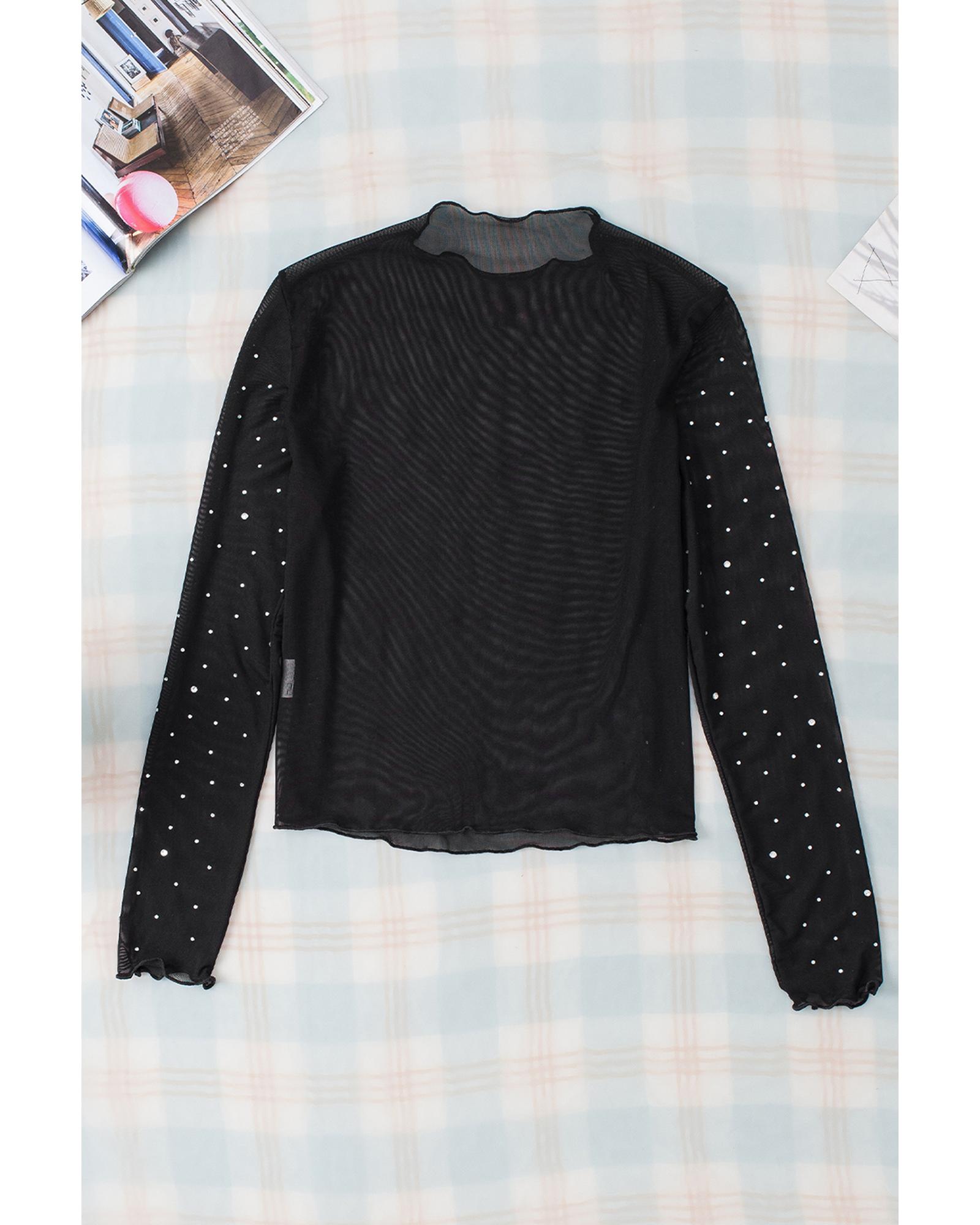 - Black Rhinestone Sheer Mesh Slim Fit Long Sleeve Top