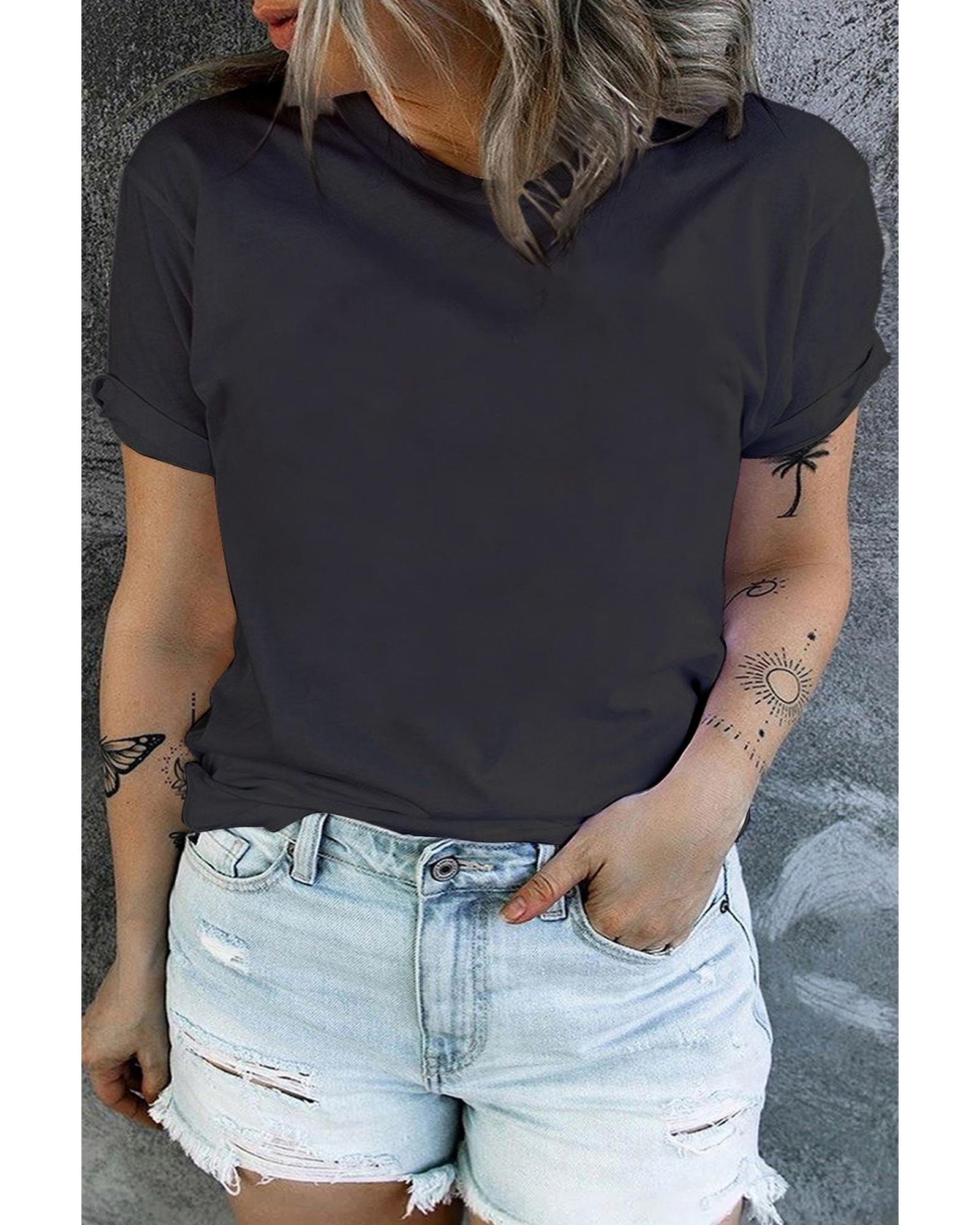 Black Round Neck Rolled Sleeve Plus Size T-shirt - 2X
