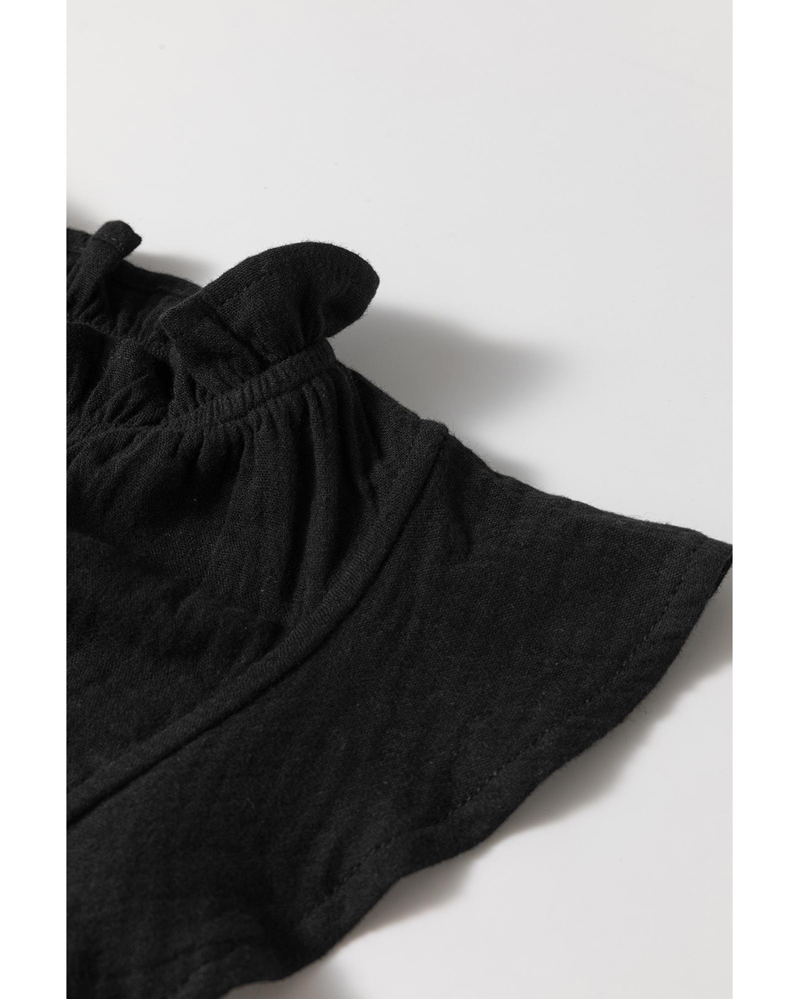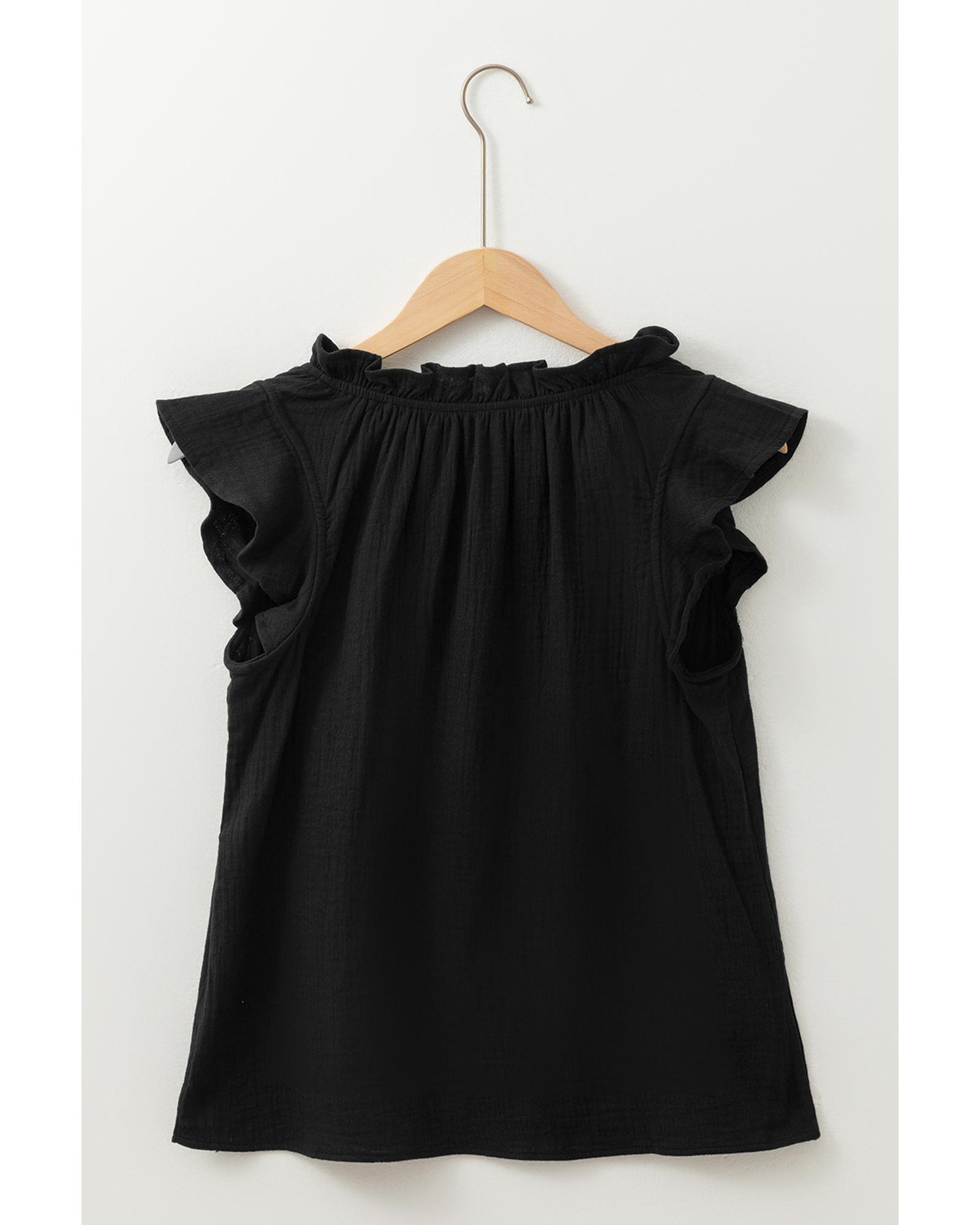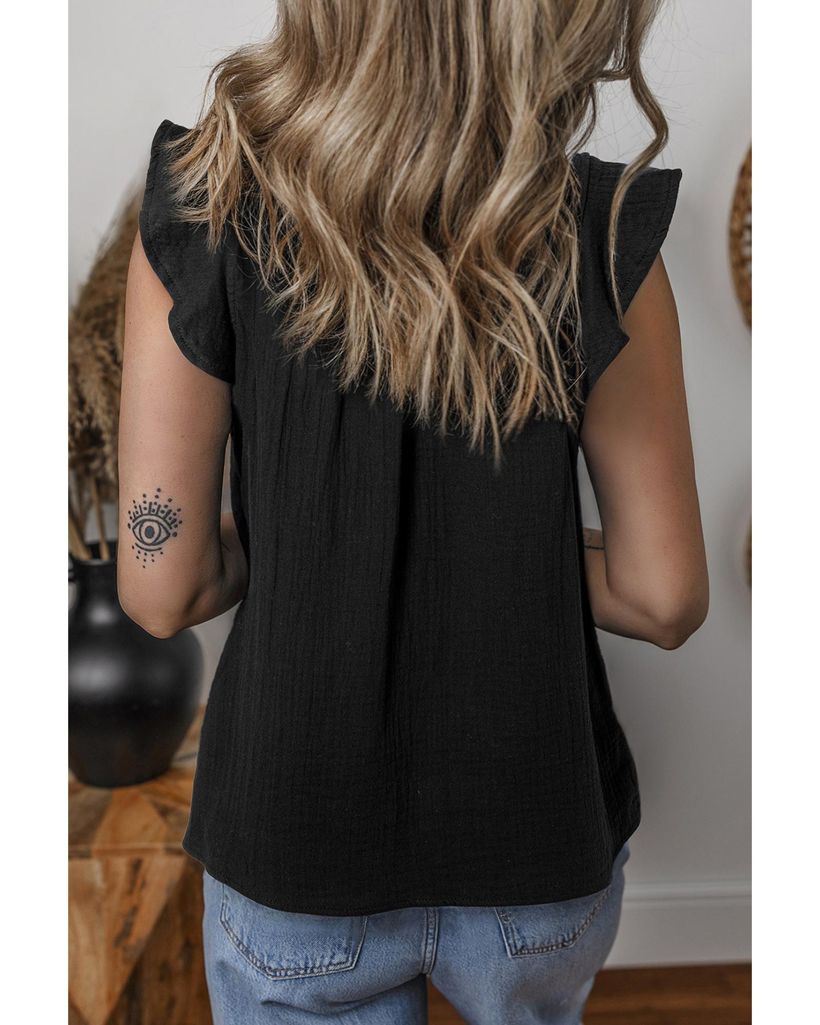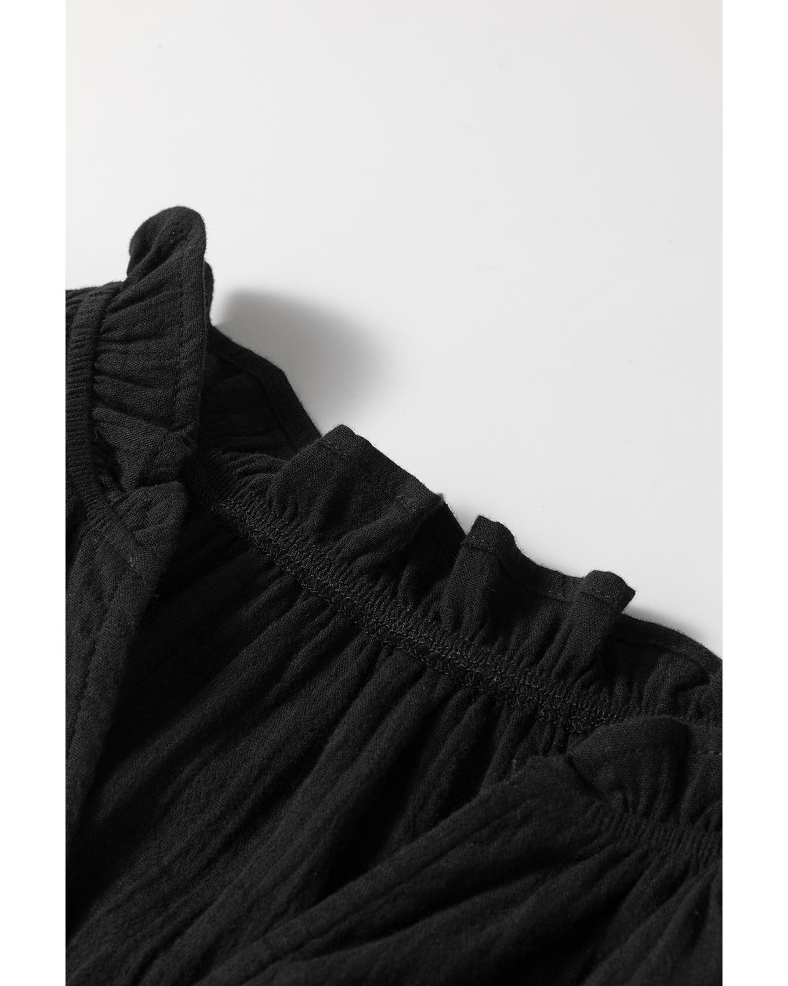 Black Ruffled Shoulder V Neck Shift Tank Top – L