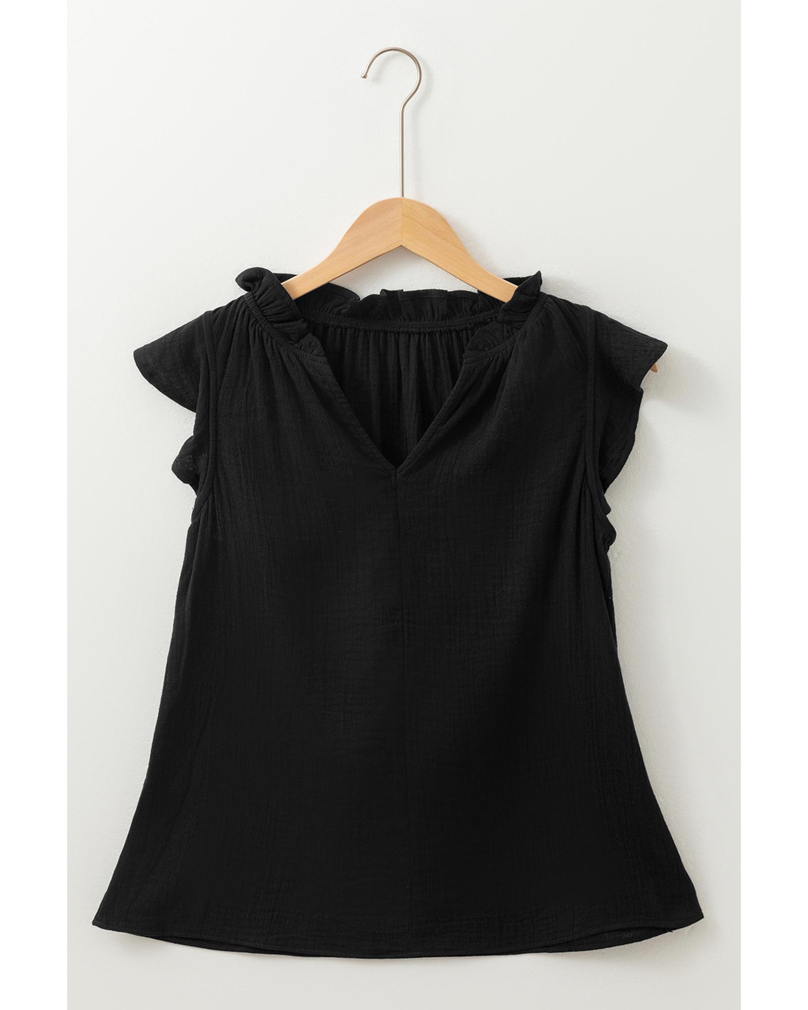 Black Ruffled Shoulder V Neck Shift Tank Top – M