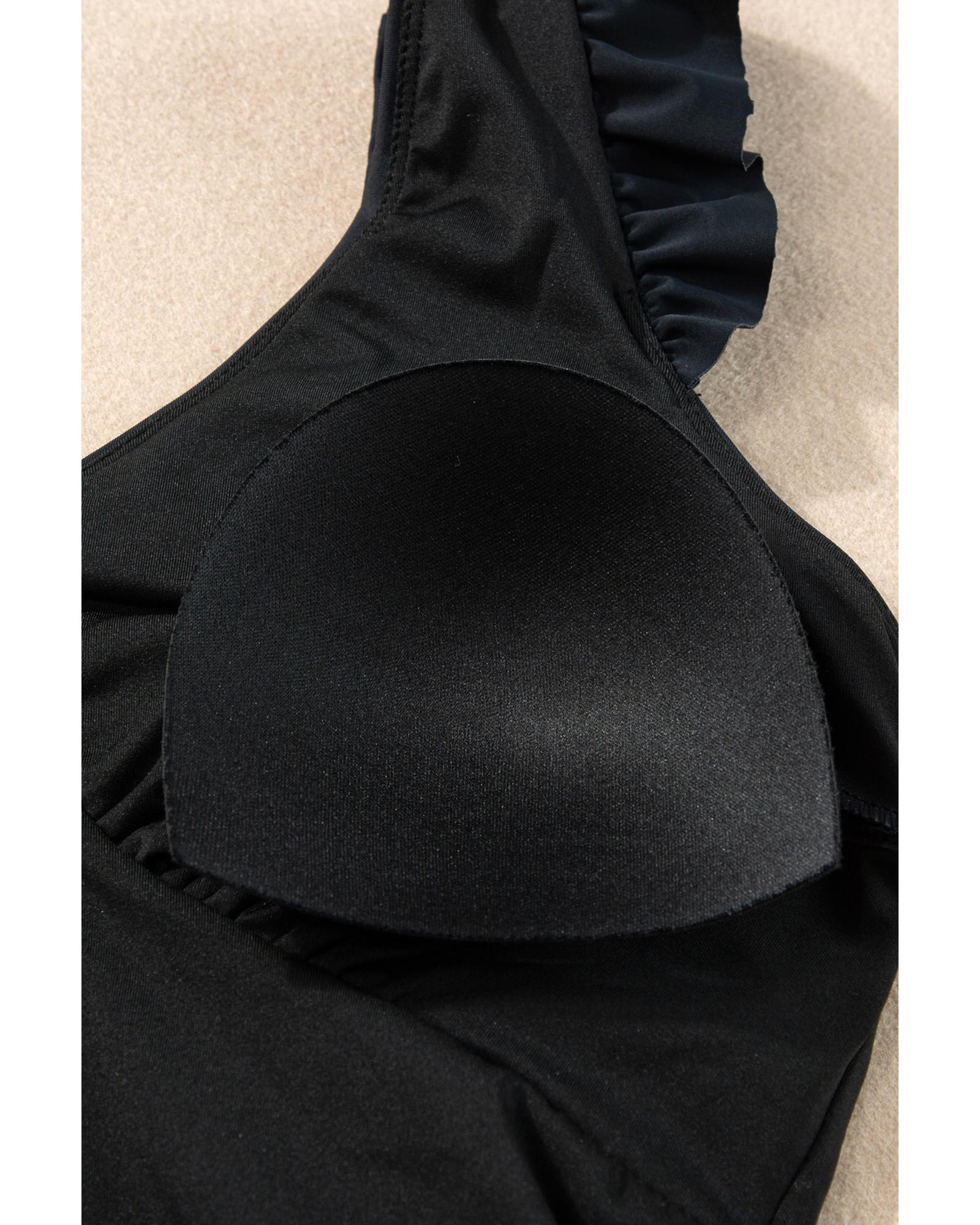 - piece bathing suit with ruffled trim