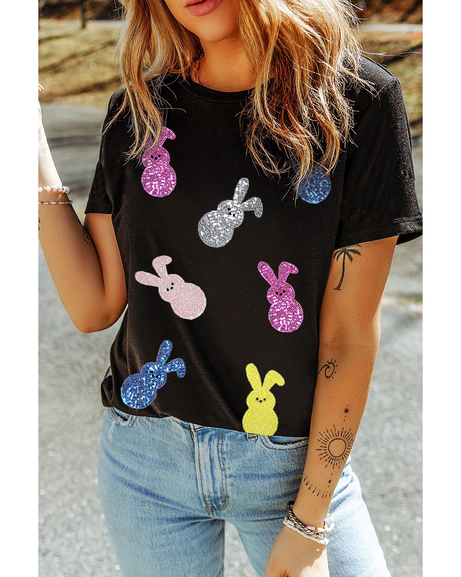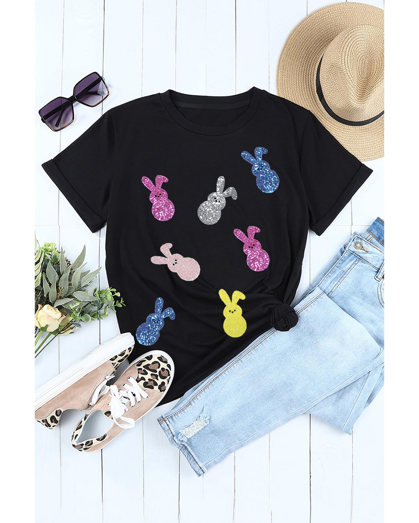 Black Sequin Bunny Doll Graphic Easter Day T Shirt – 2XL