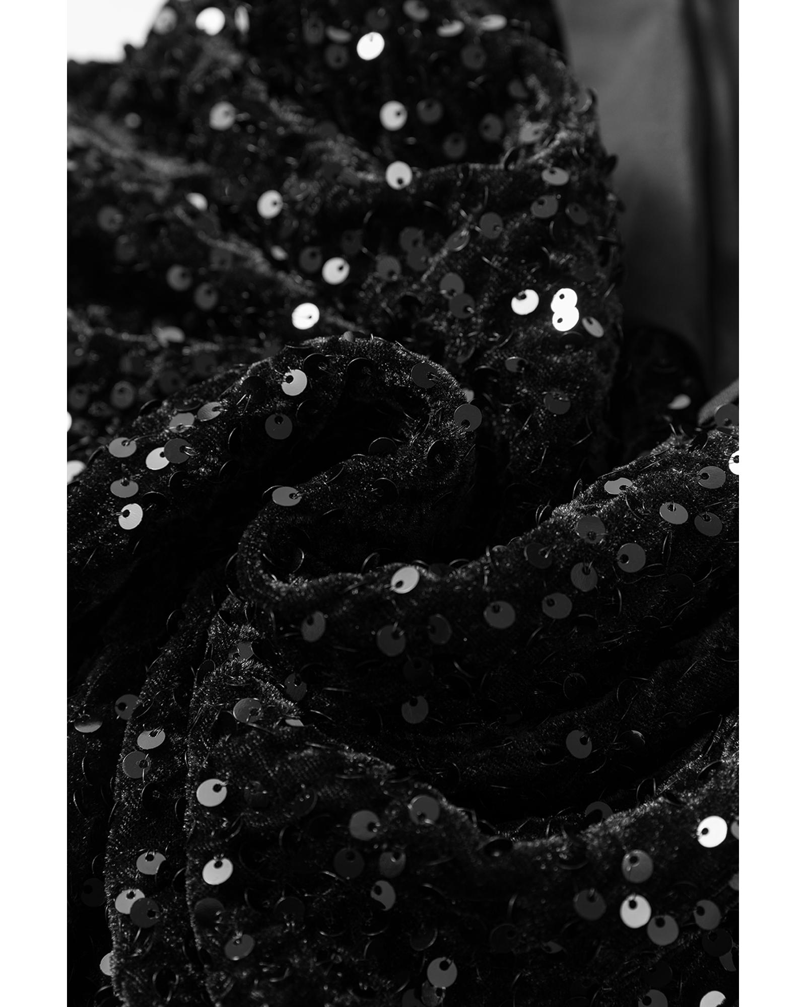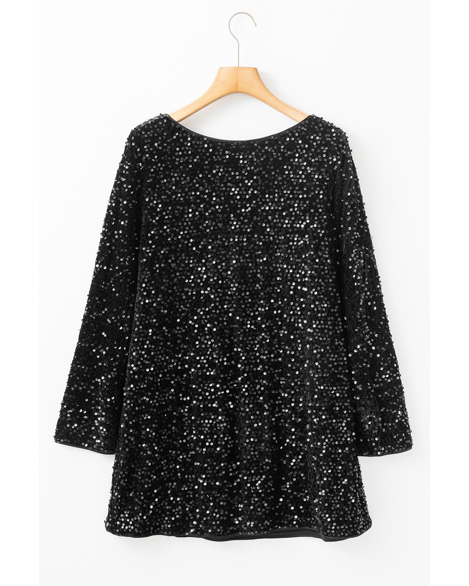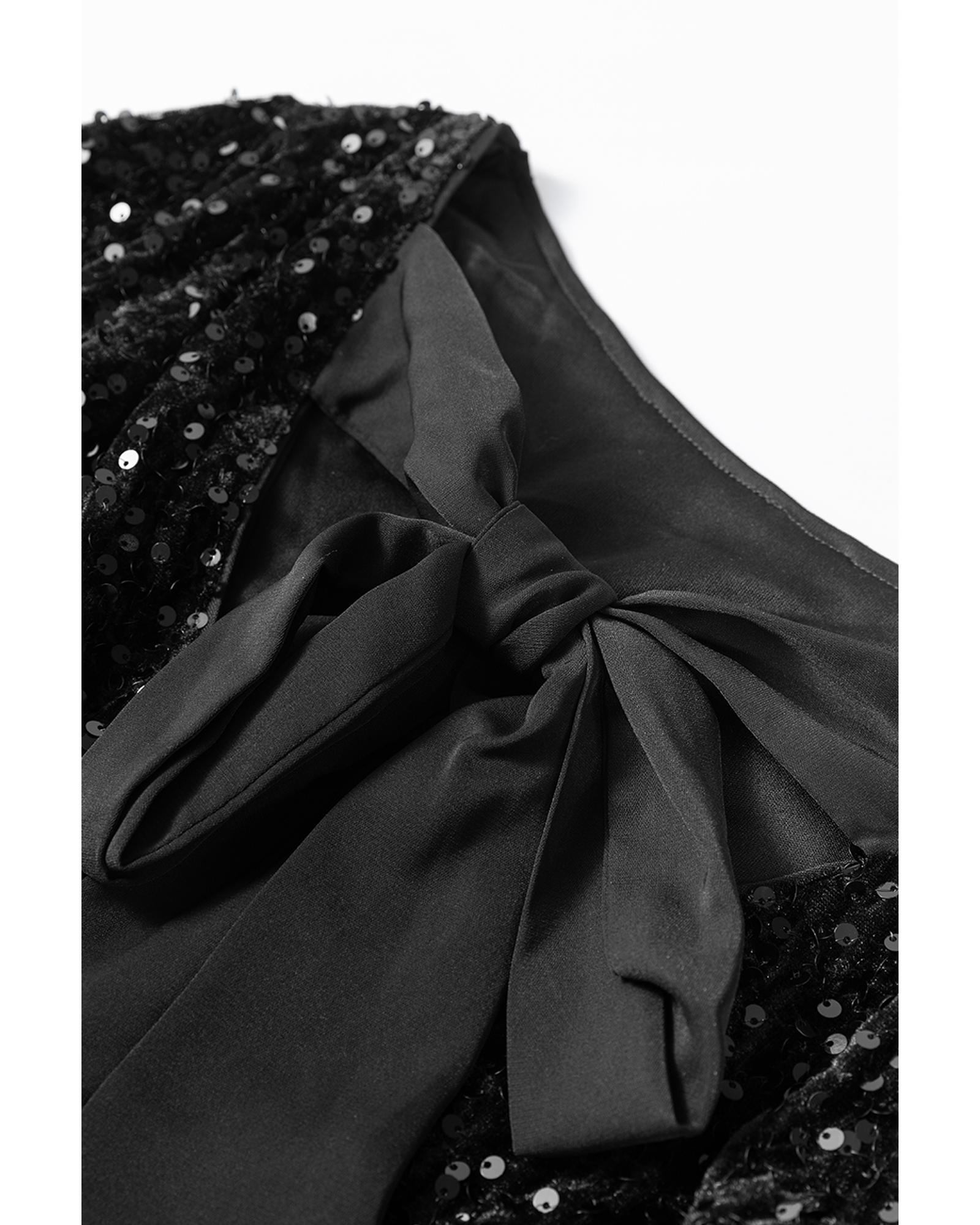 Black Sequin Long Sleeve Knot Cutout Back Mini Dress – S