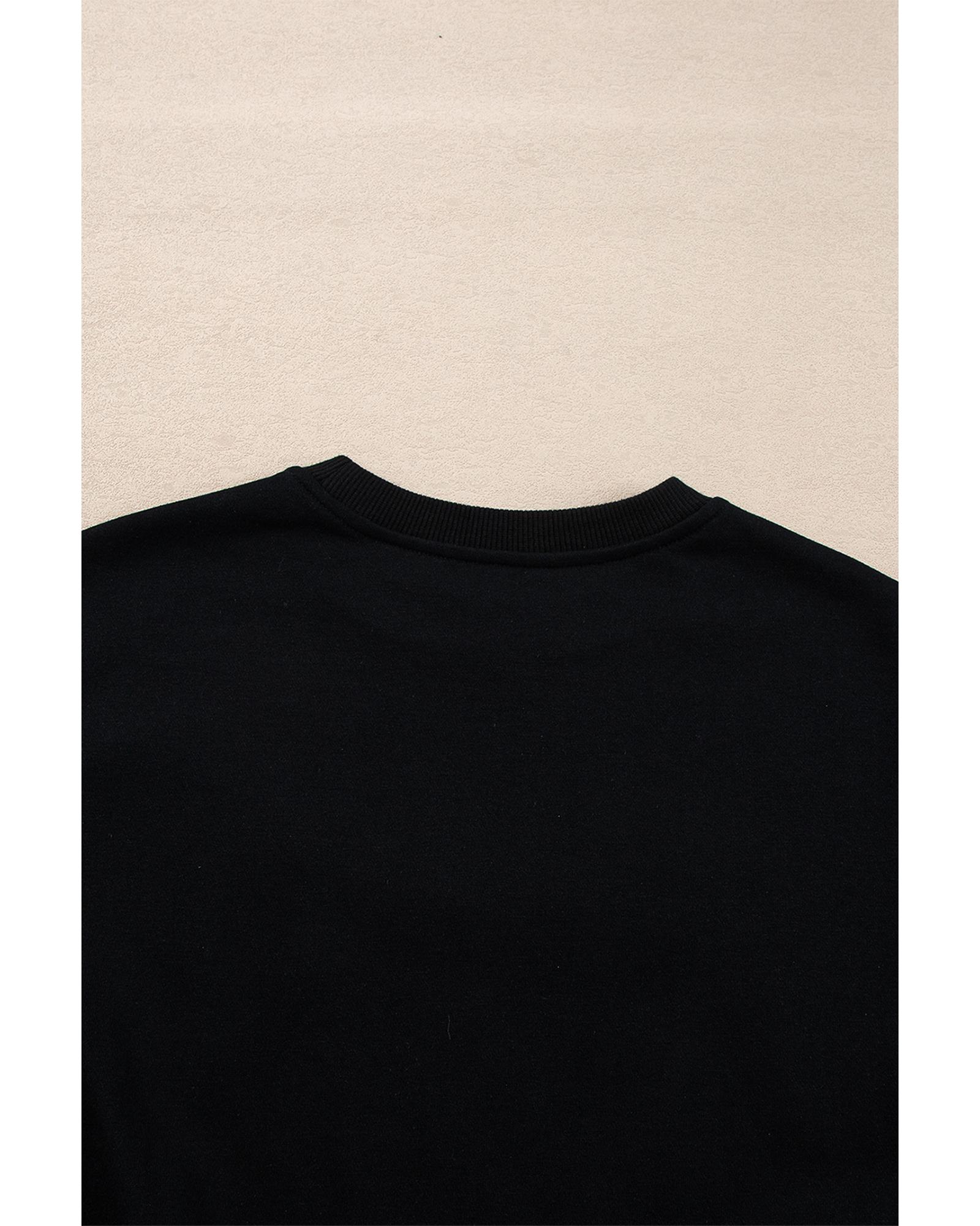 Black Sequin Merry Graphic Pullover and Shorts Outfit – XL