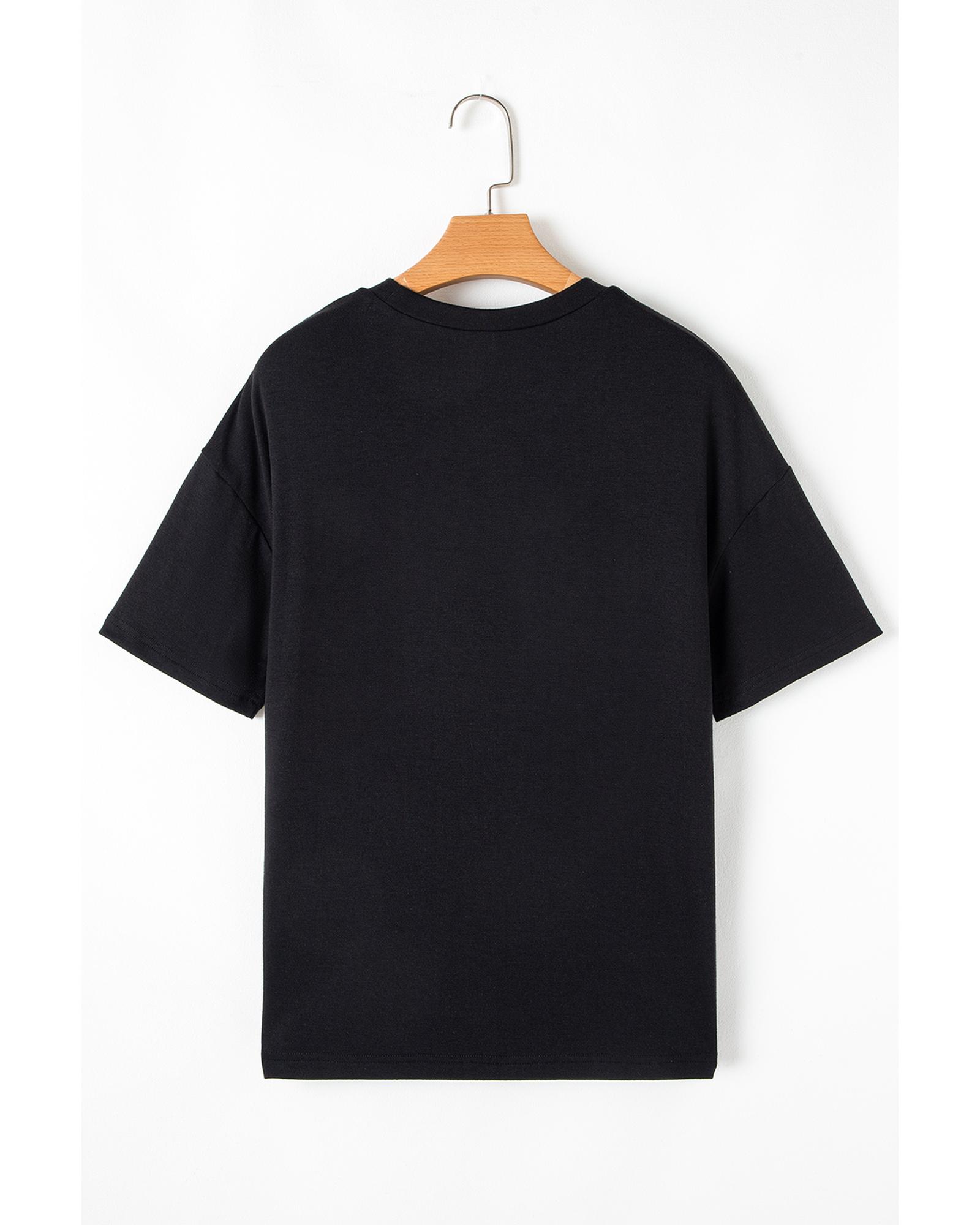 - Black Sequin Stripes Patchwork Mardi Gras Crew Neck T
