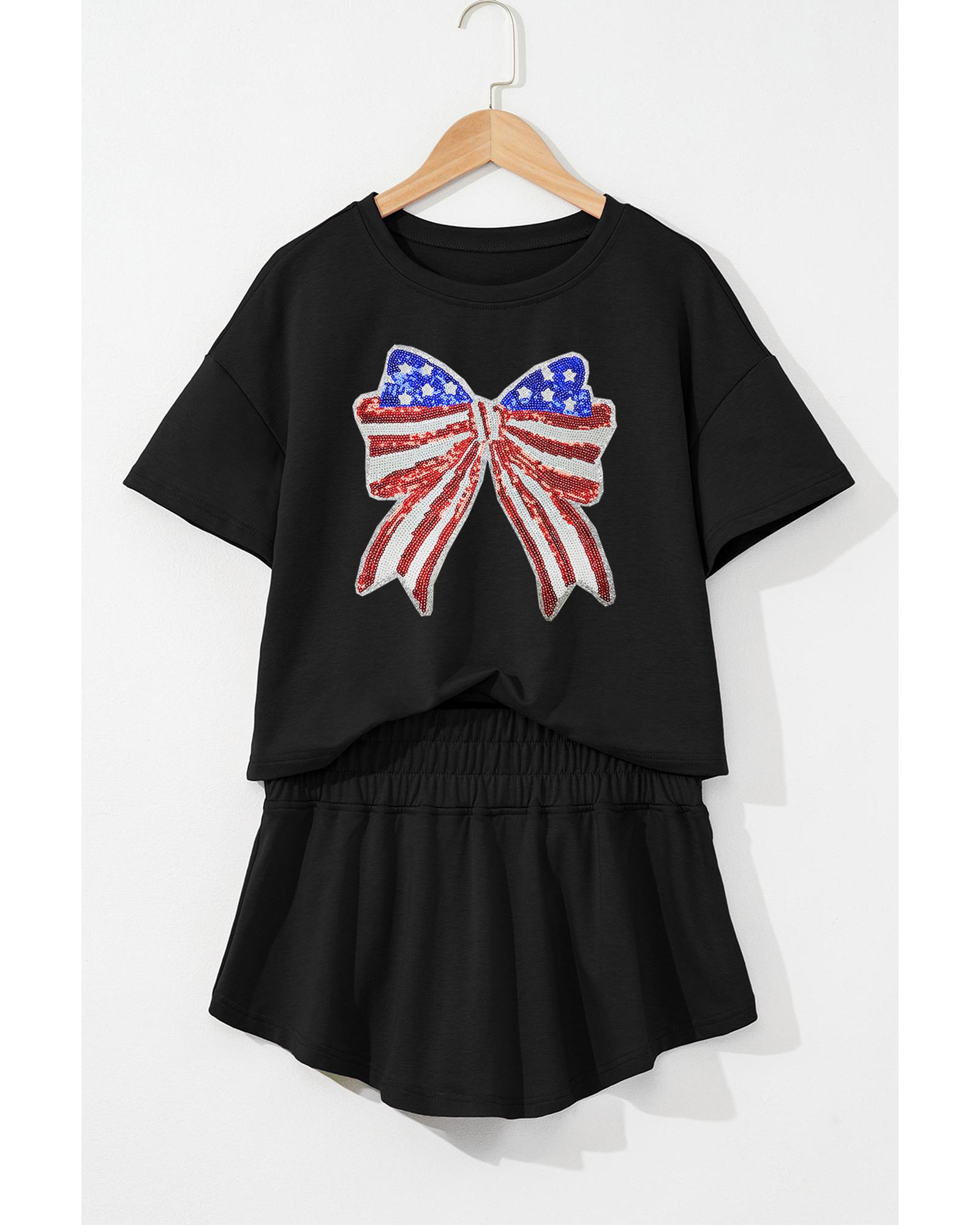 Black Sequined Flag Bow Pattern Short 2pcs Skort Set – XL