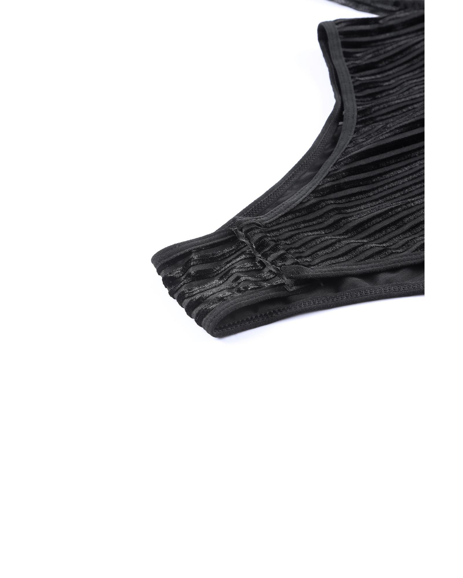Black Sheer Dotty Long Sleeve Ribbed Velvet Bodysuit – L