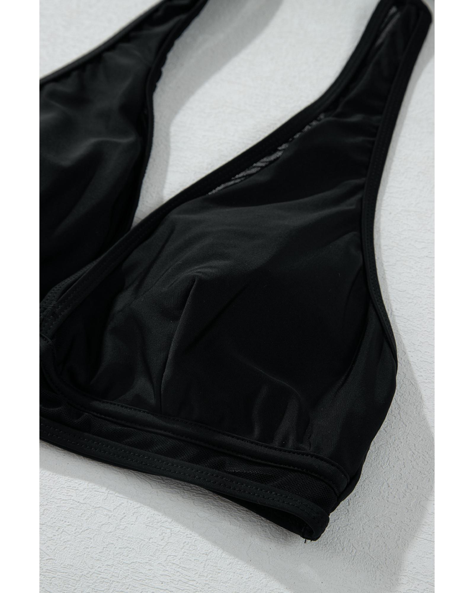 Black Sheer Mesh Edged Halter V Neck Push Up Bikini – 2XL