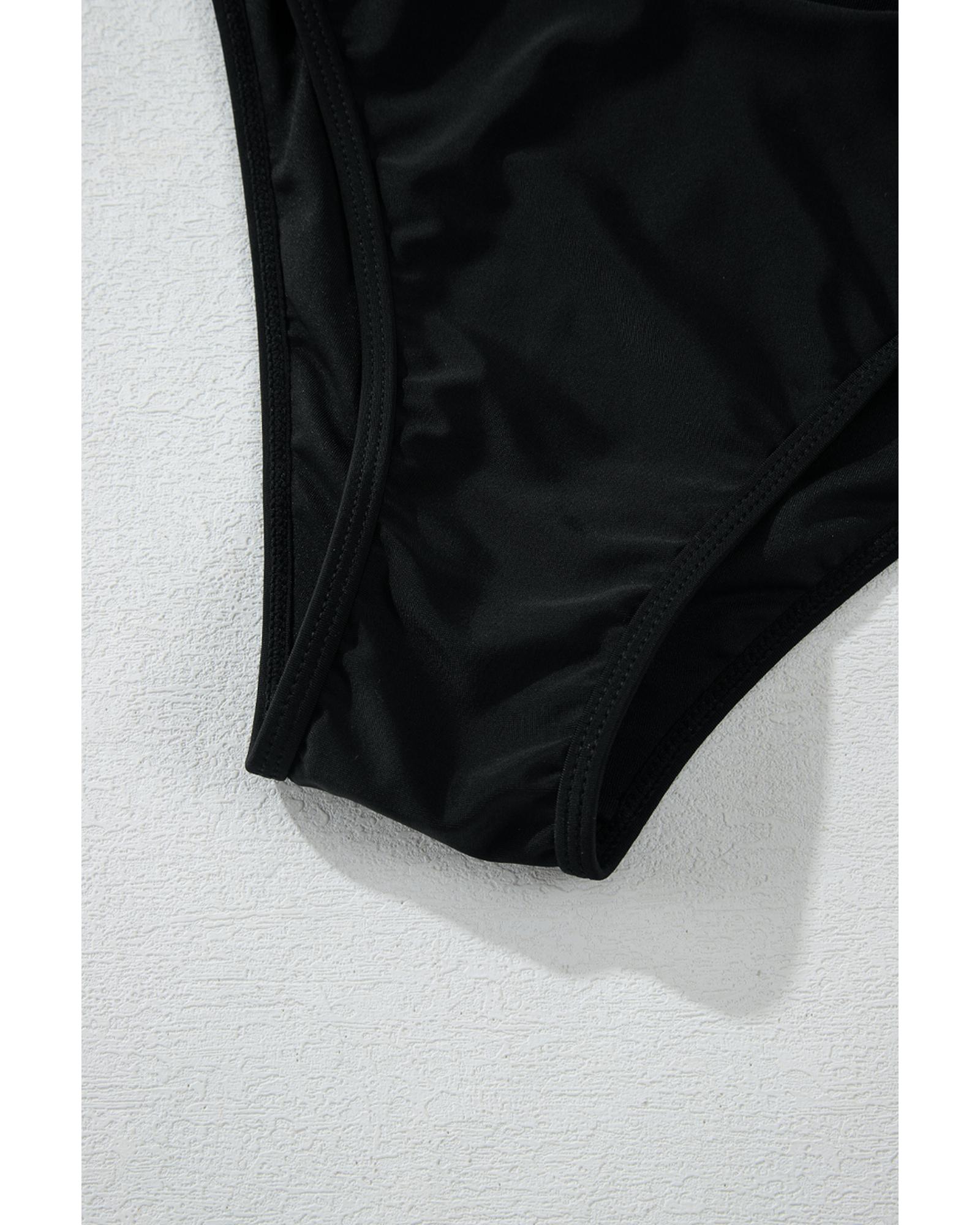 Black Sheer Mesh Edged Halter V Neck Push Up Bikini - XL Original price was: $58.99.Current price is: $31.99.