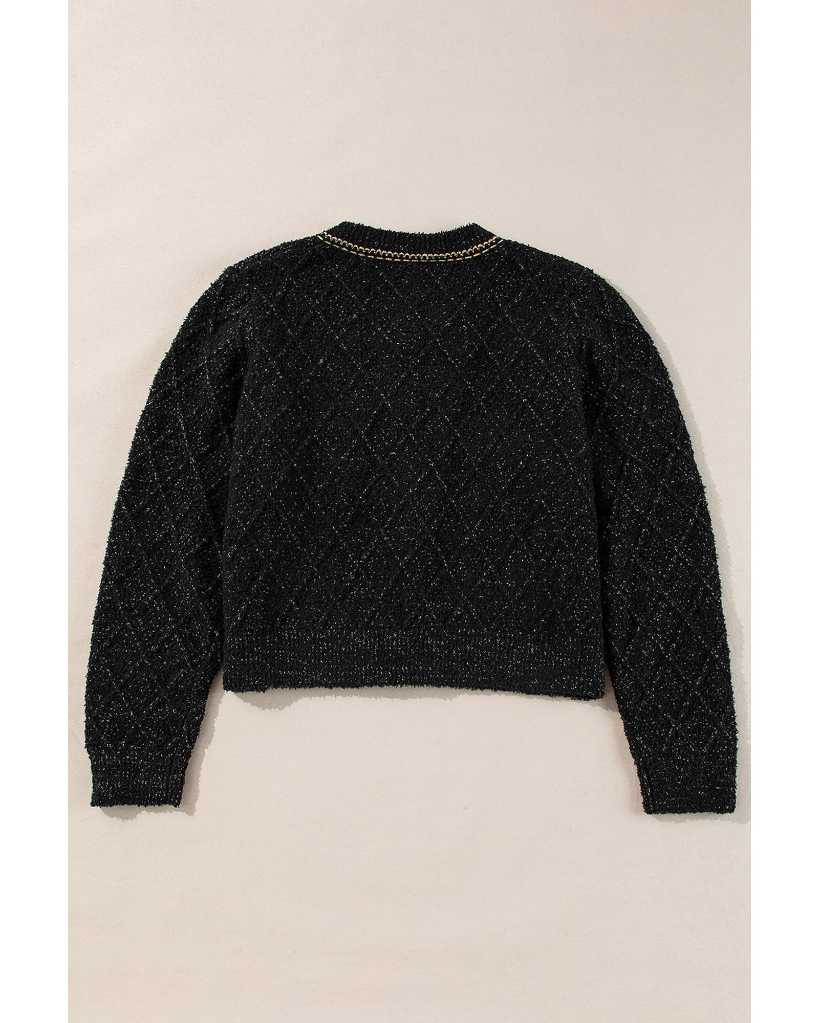 Black Shimmer Flap Pocket Button up Cardigan – L