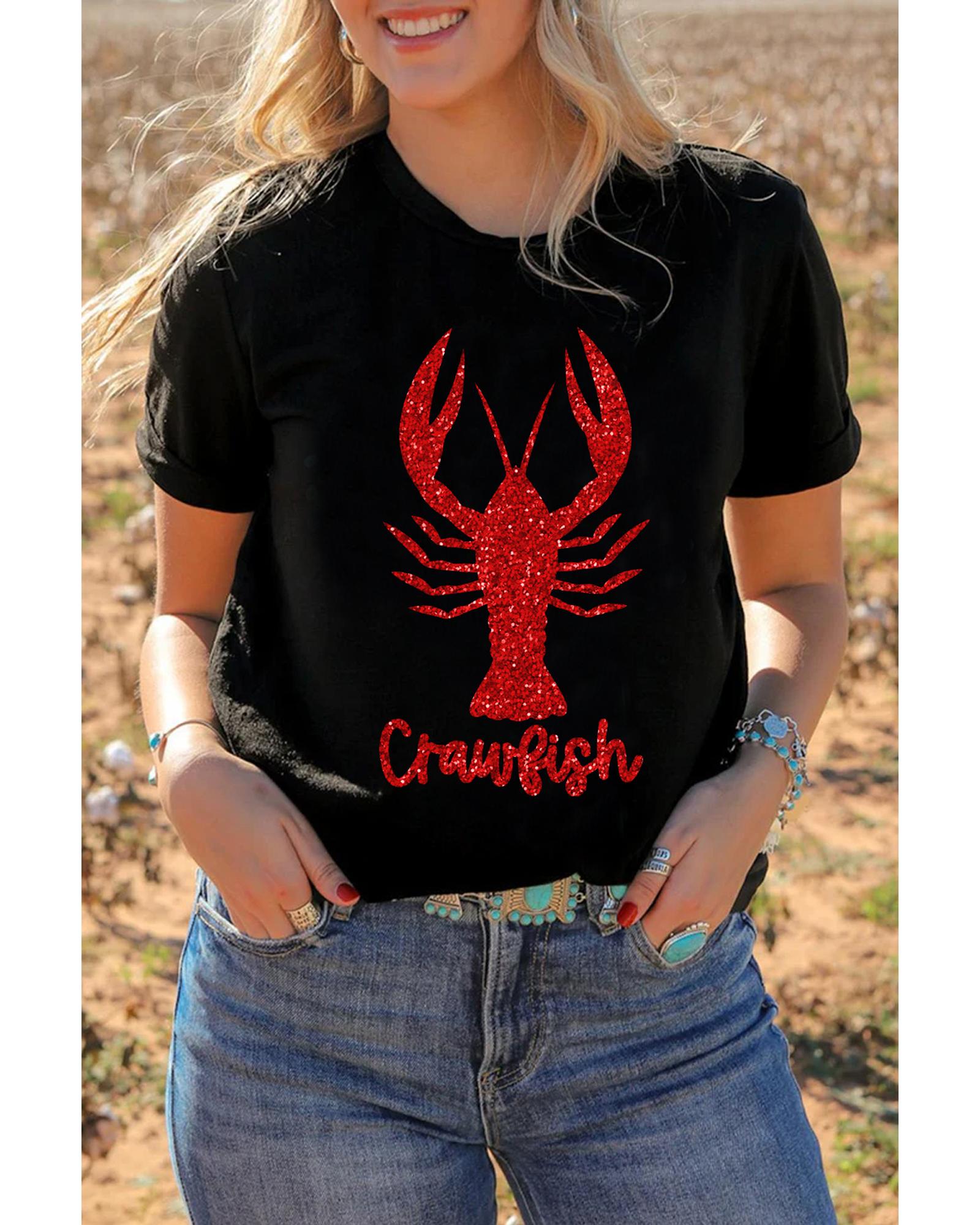 Black Shimmering Crawfish Graphic Tee – 2XL