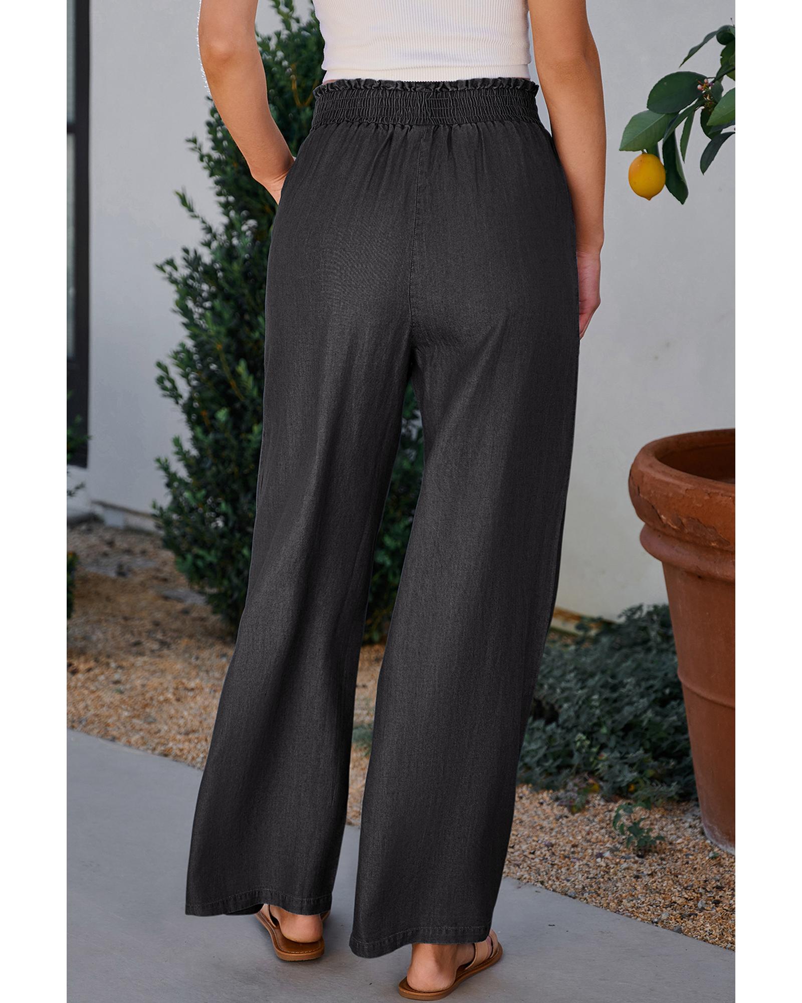 Black Side Pockets Frilled Smocked High Waist Wide Leg Jeans – S