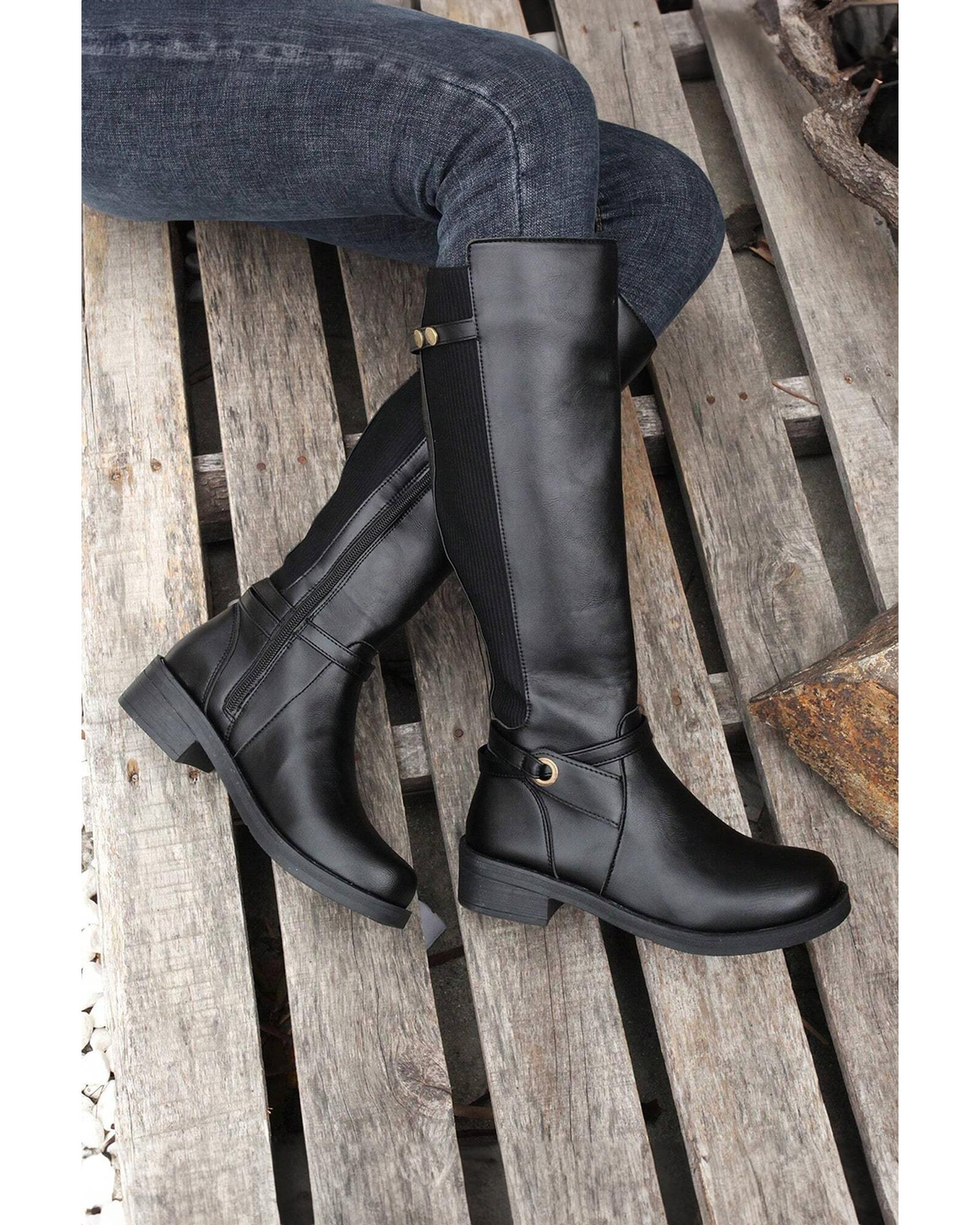 Black Side Zipper Knee High Chunky Low Heel Boots – 40 EU