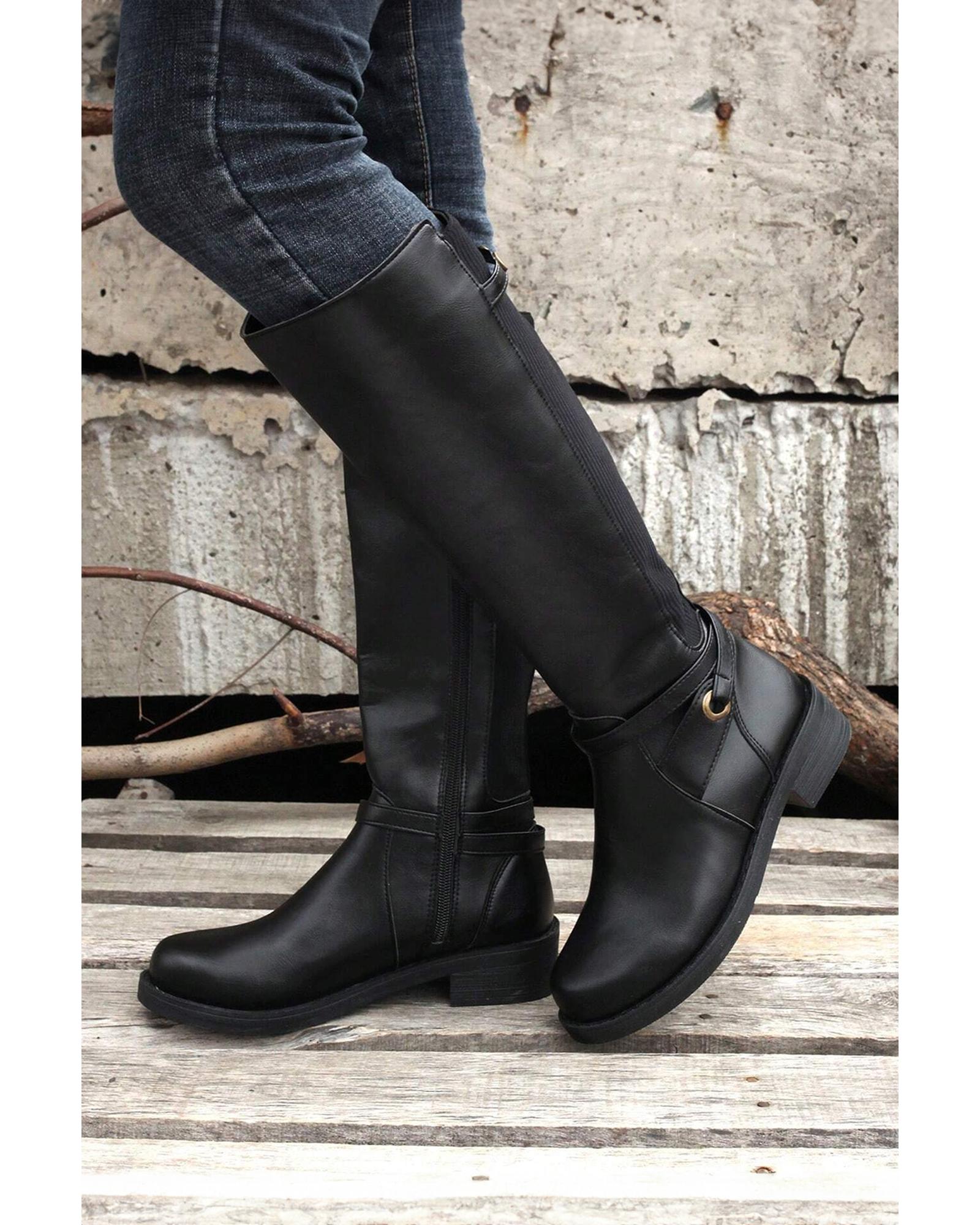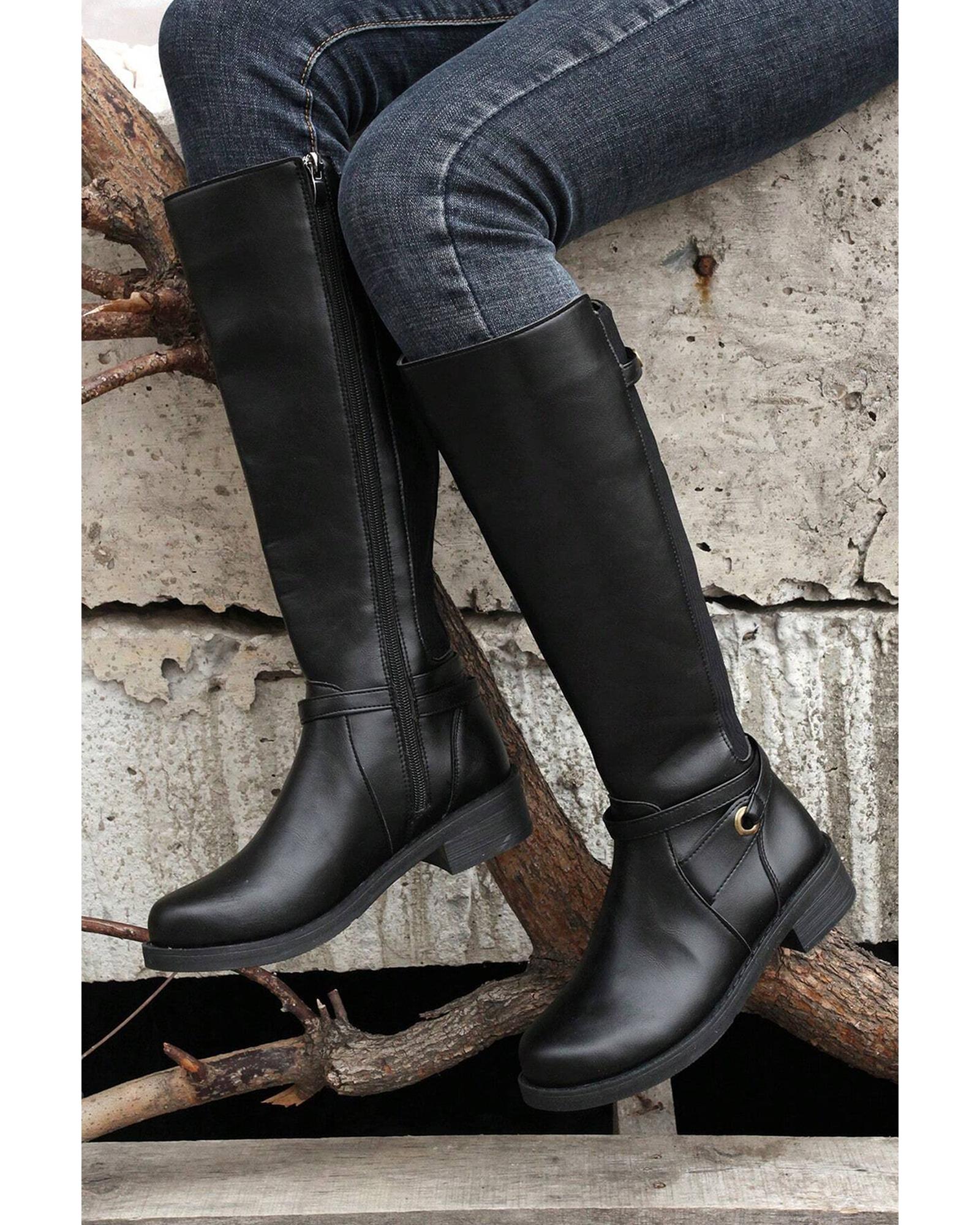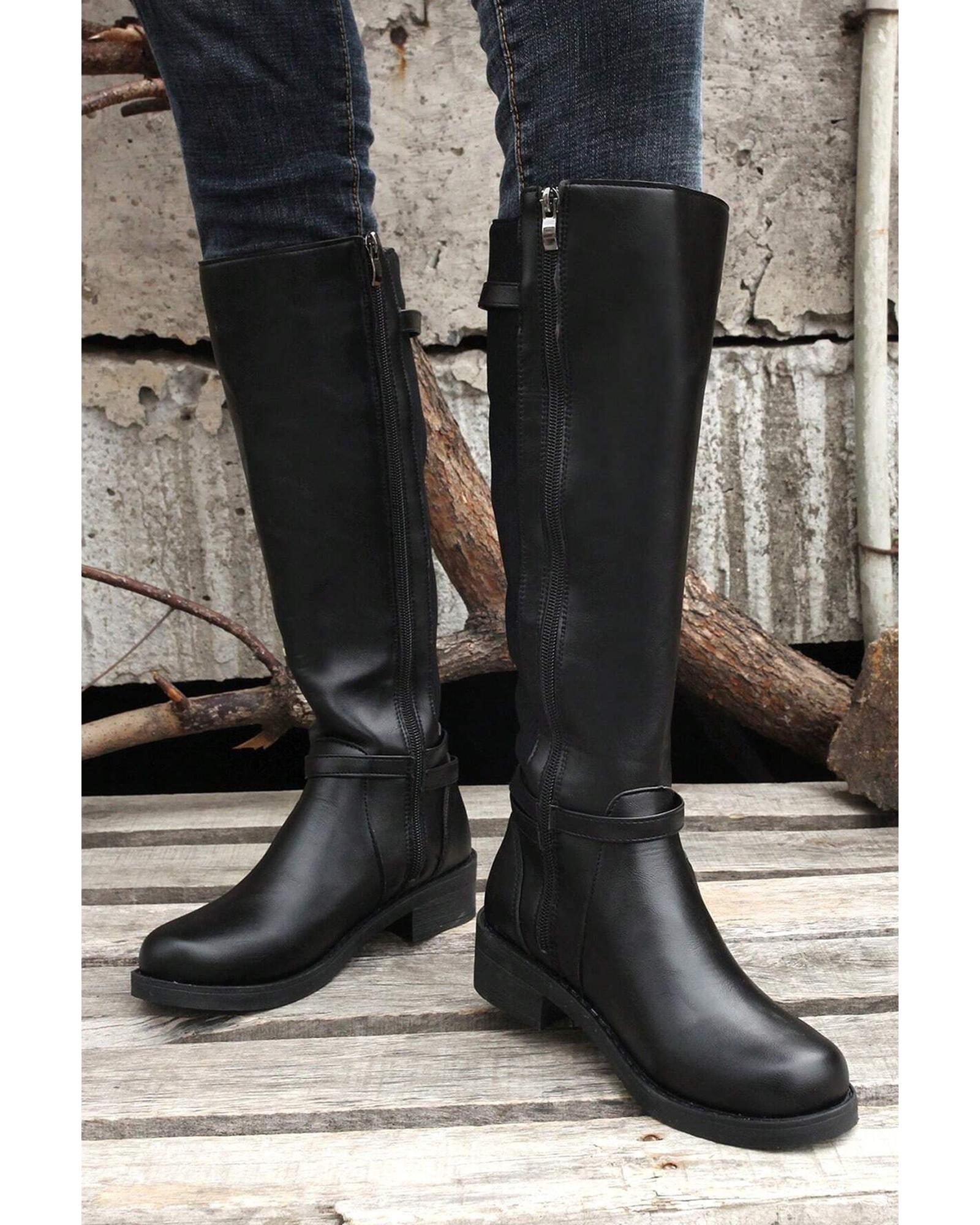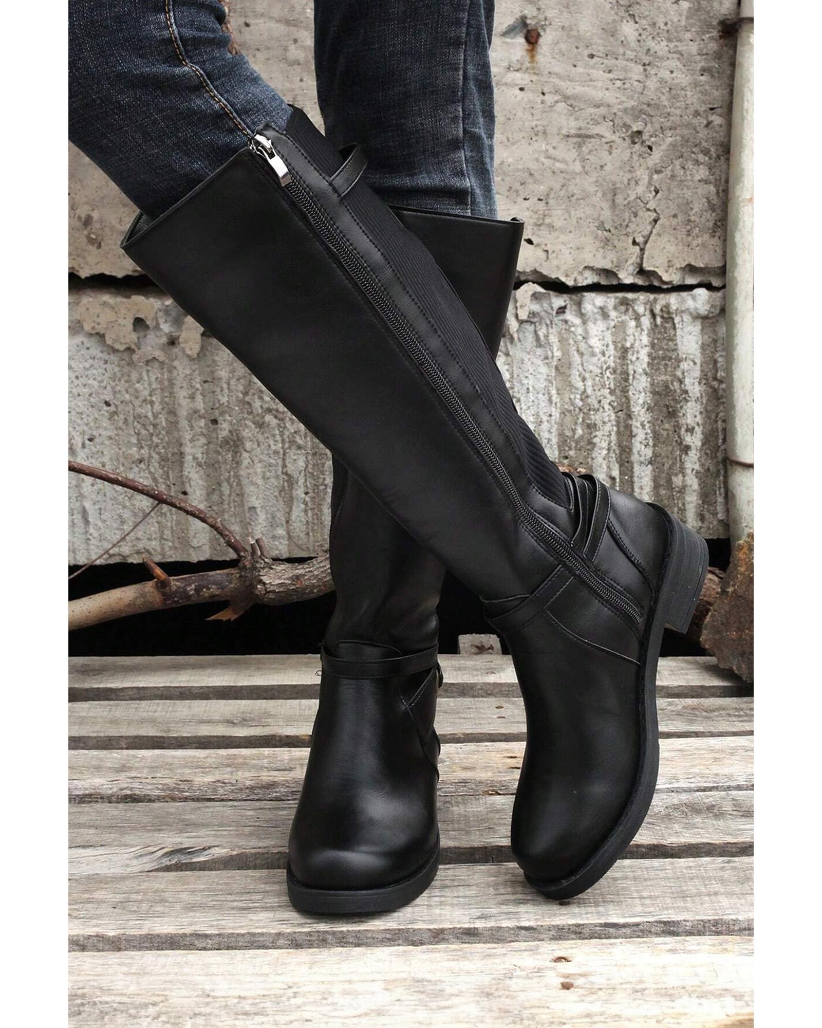 Black Side Zipper Knee High Chunky Low Heel Boots – 41 EU