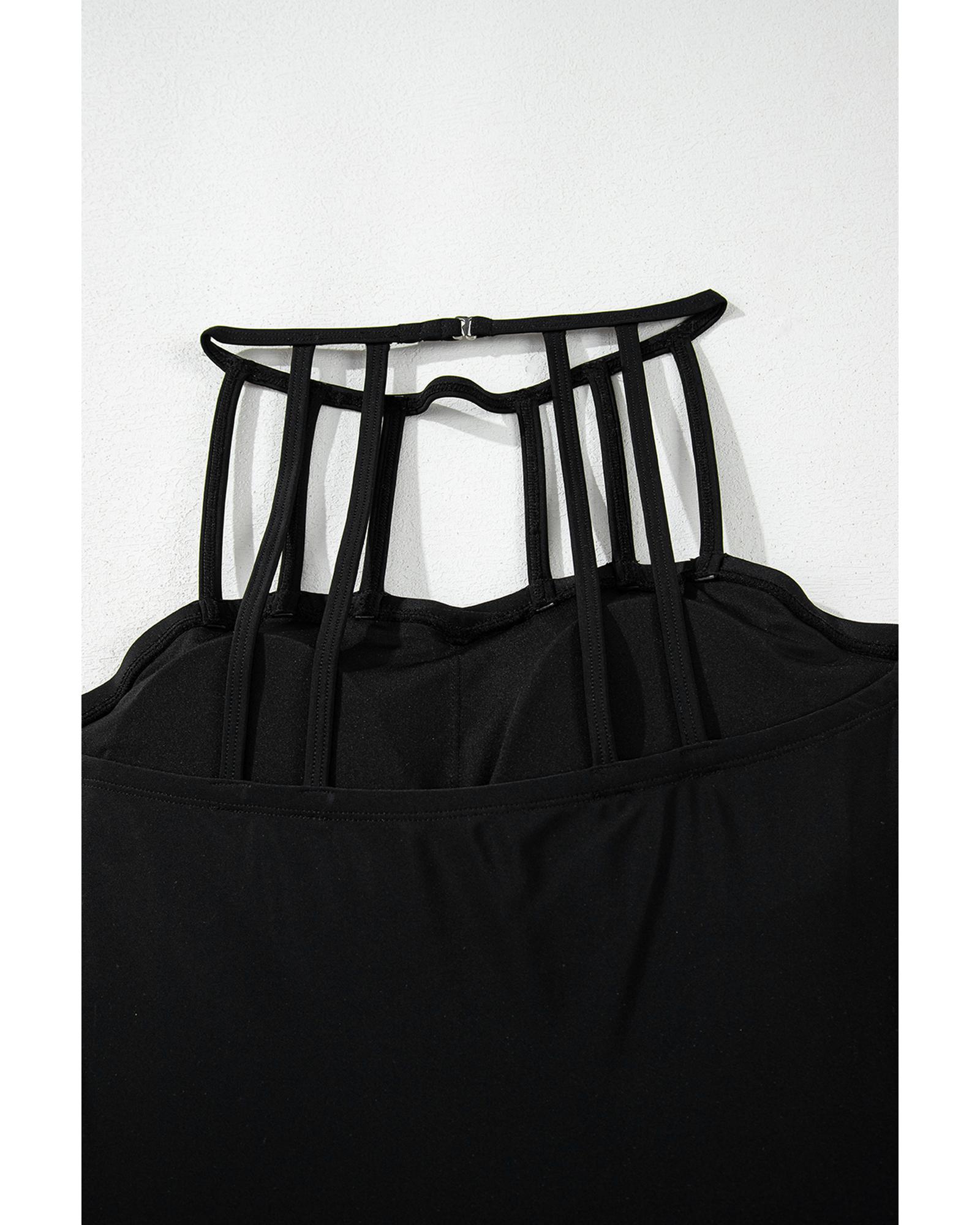 Black Sleeveless Strappy Halter Neck Sexy One Piece Swimsuit – S