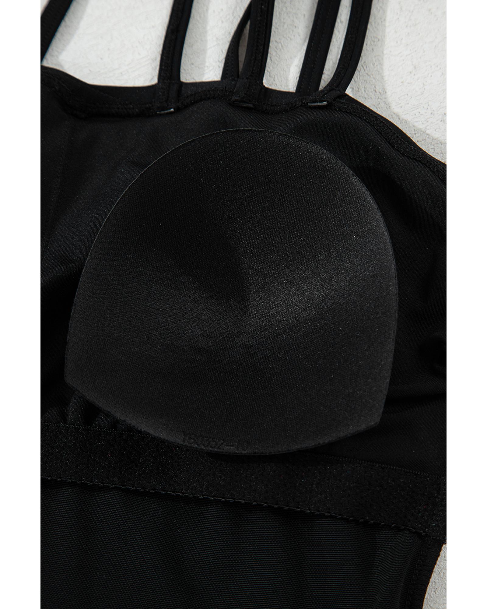 Black Sleeveless Strappy Halter Neck Sexy One Piece Swimsuit – XL