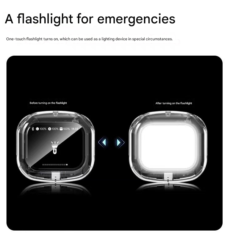 • Revolutionary LCD Touchscreen Case: The charging case features a vibrant smart touchscreen, allowing you to answer calls, control music playback, select EQ modes, find your earbuds, set wallpapers, and even use it as a flashlight, all from the case itself.