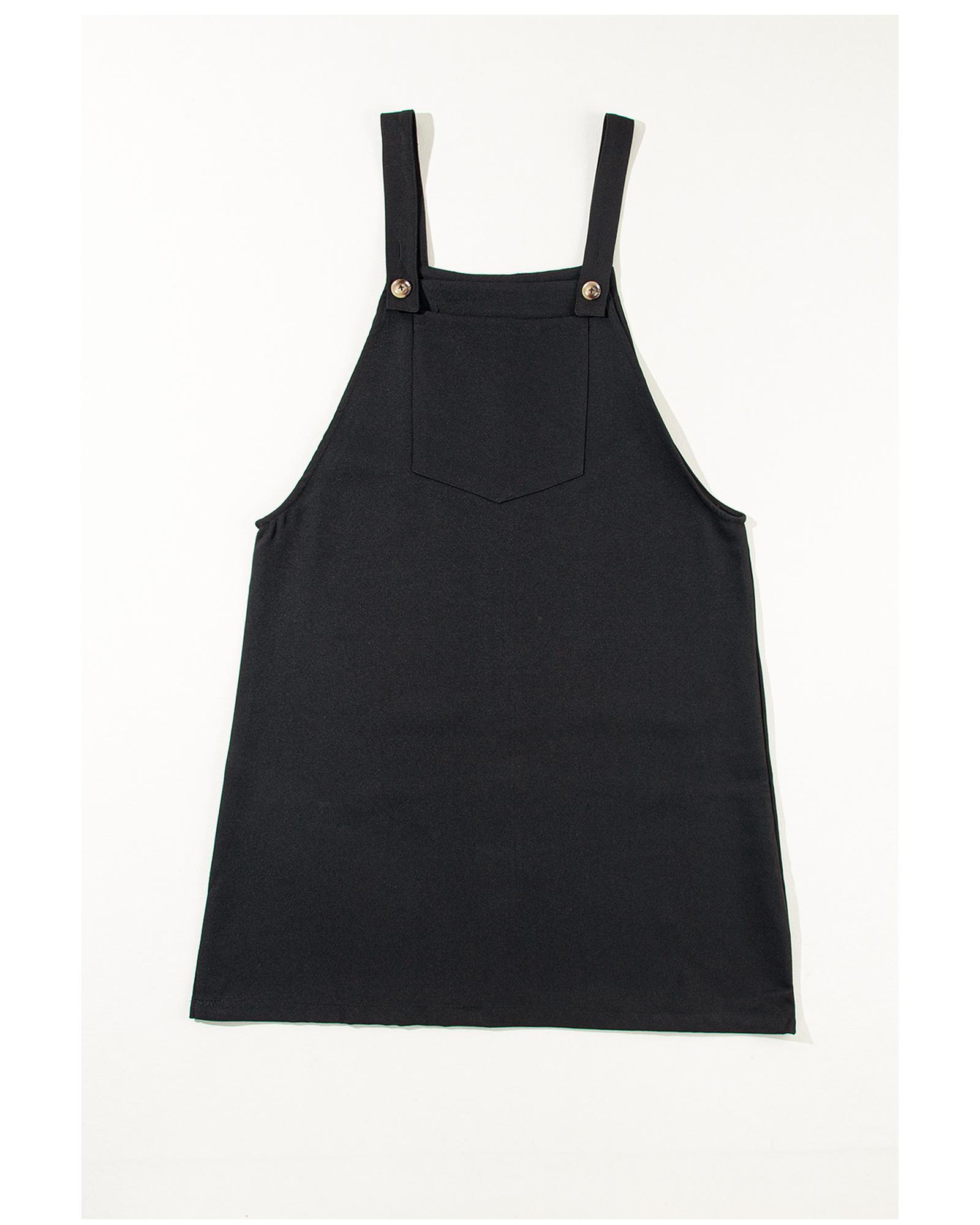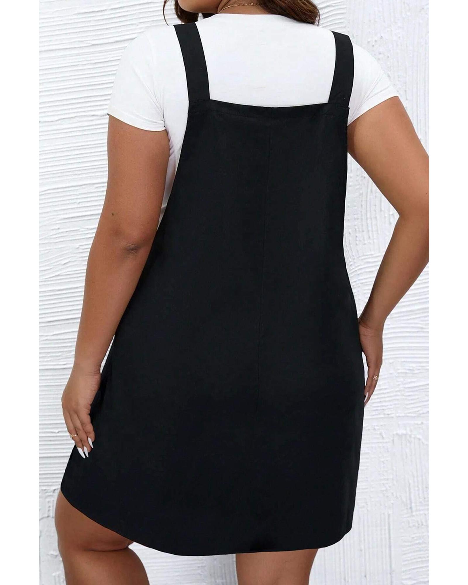 Black Solid Buttoned Straps Plus Size Overall Dress – 2X