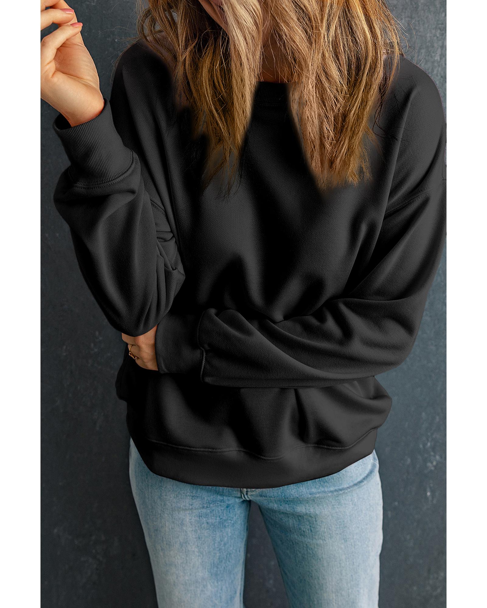 Black Chenille BOO Patched Pattern Crewneck Halloween Sweatshirt - XL
