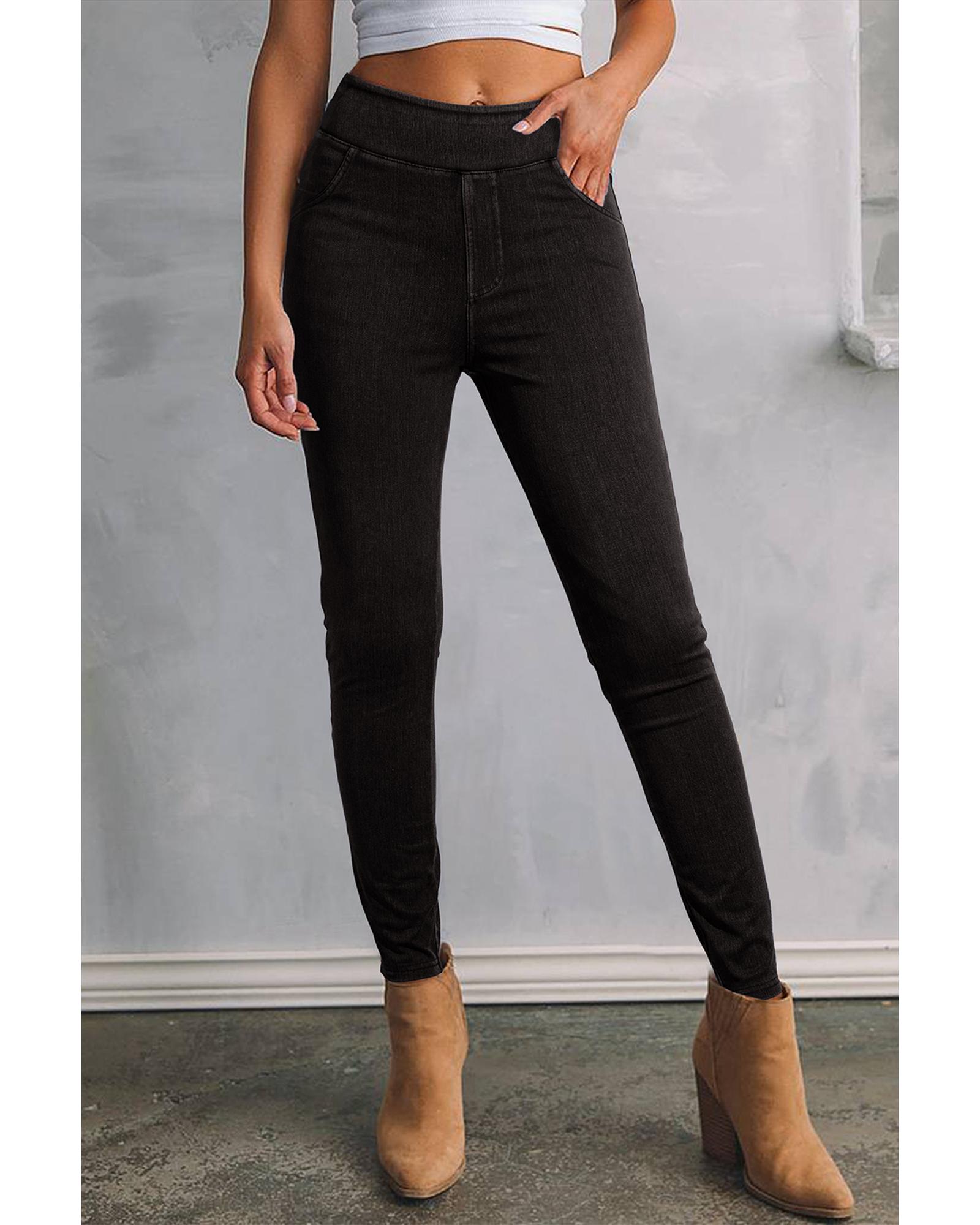 Black Solid Color High Waist Stretchy Slim Fit Jeggings – L