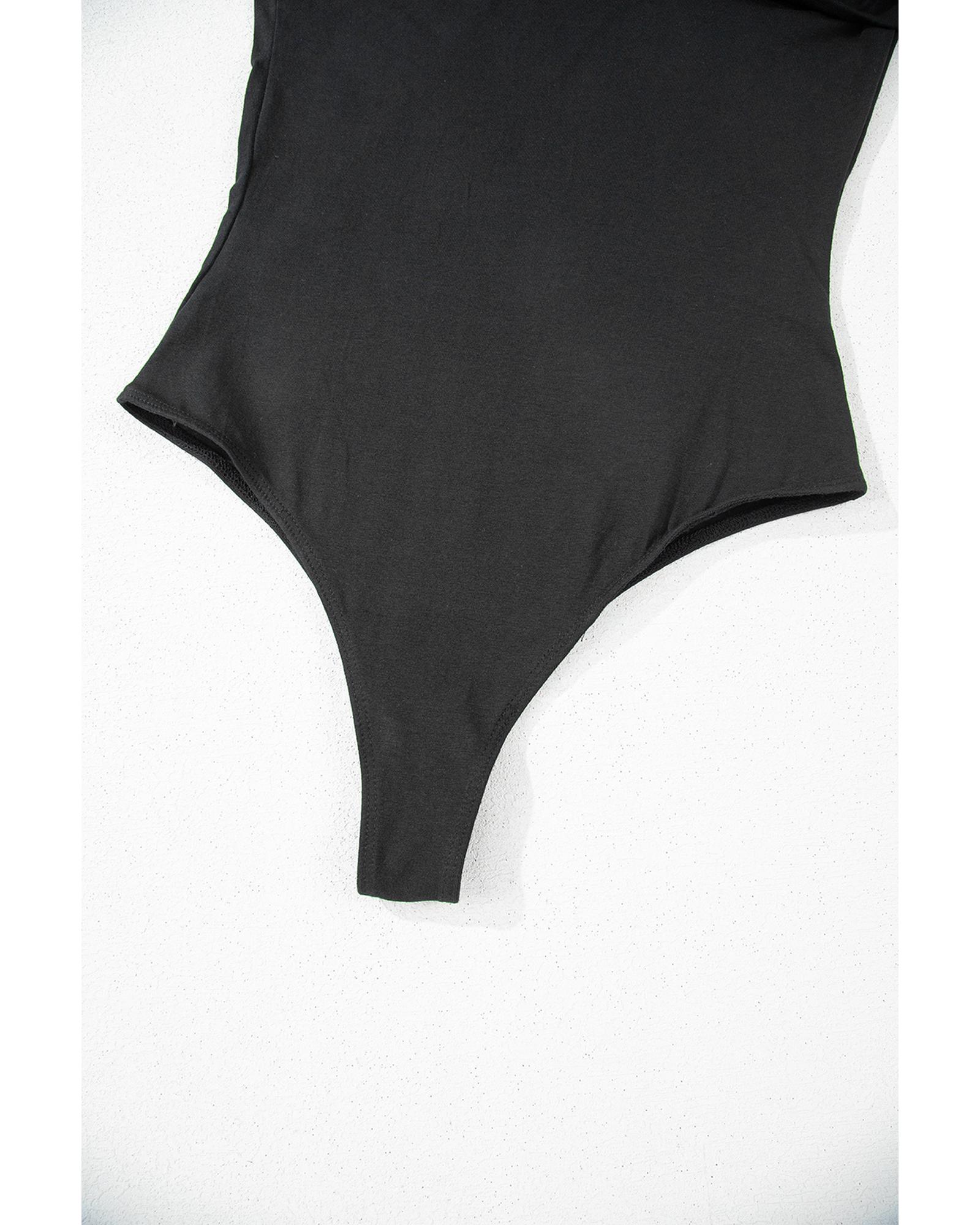 Black Solid Color Pleated One Shoulder Bodysuit – L