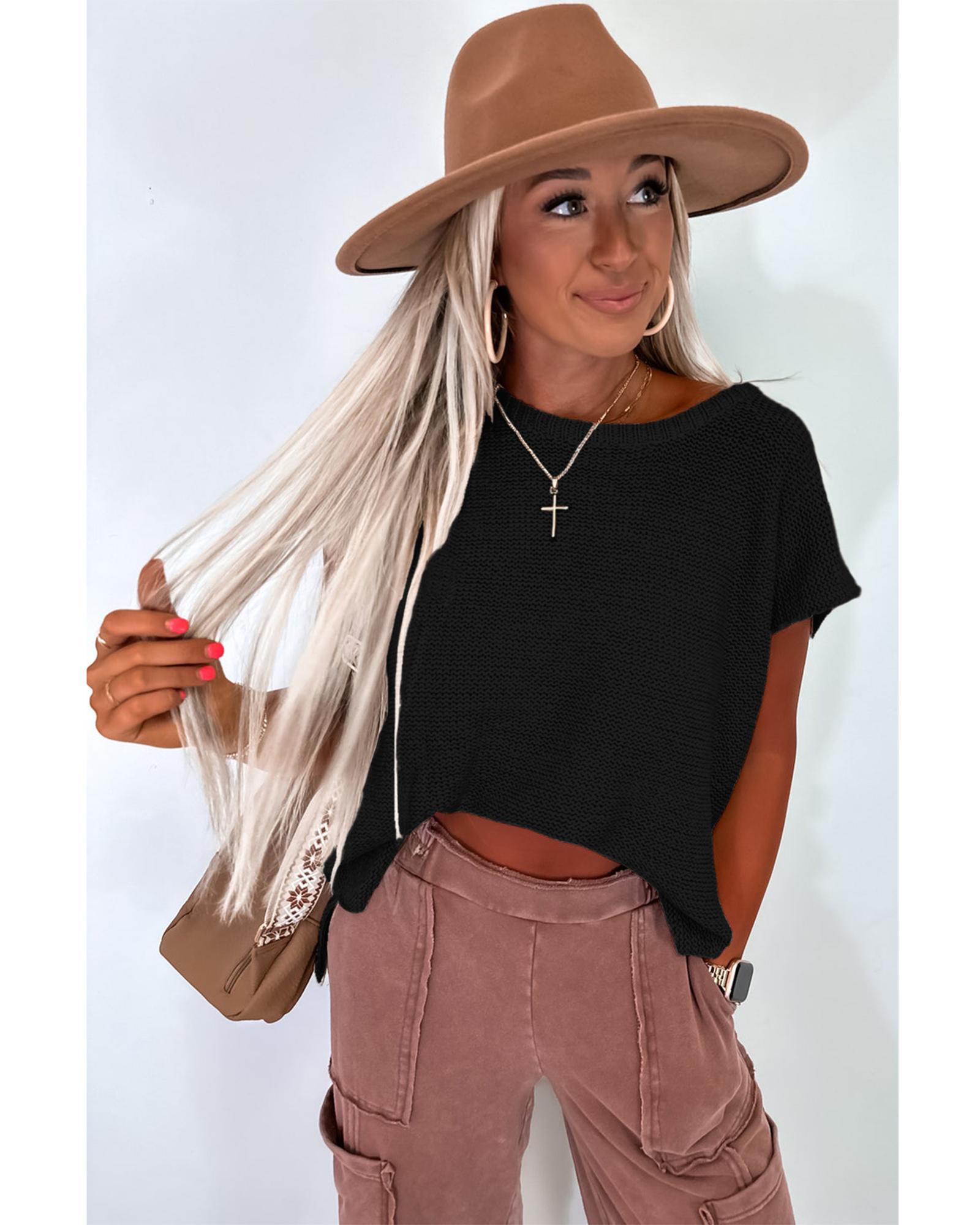 - Black Solid Color Sweater Tee