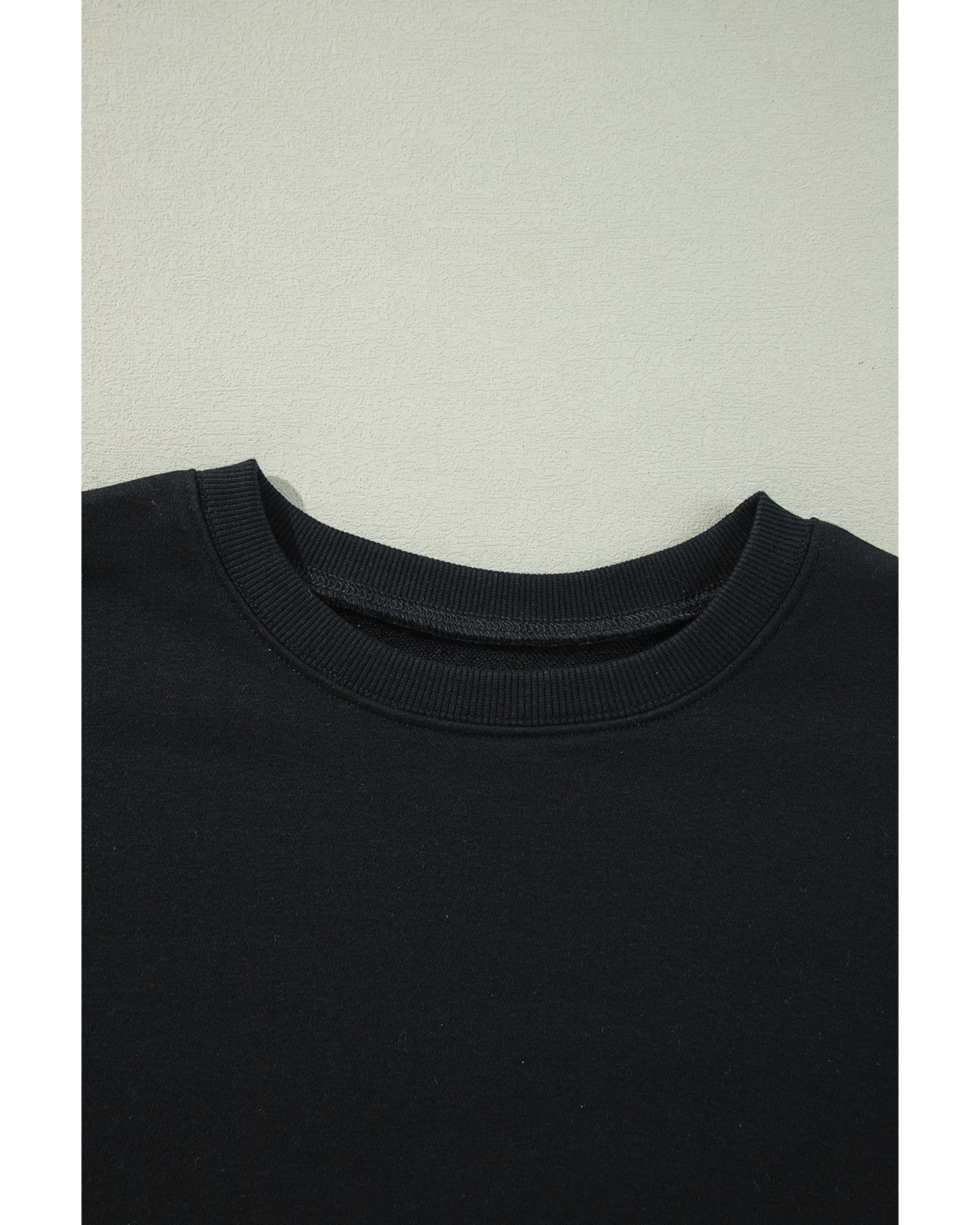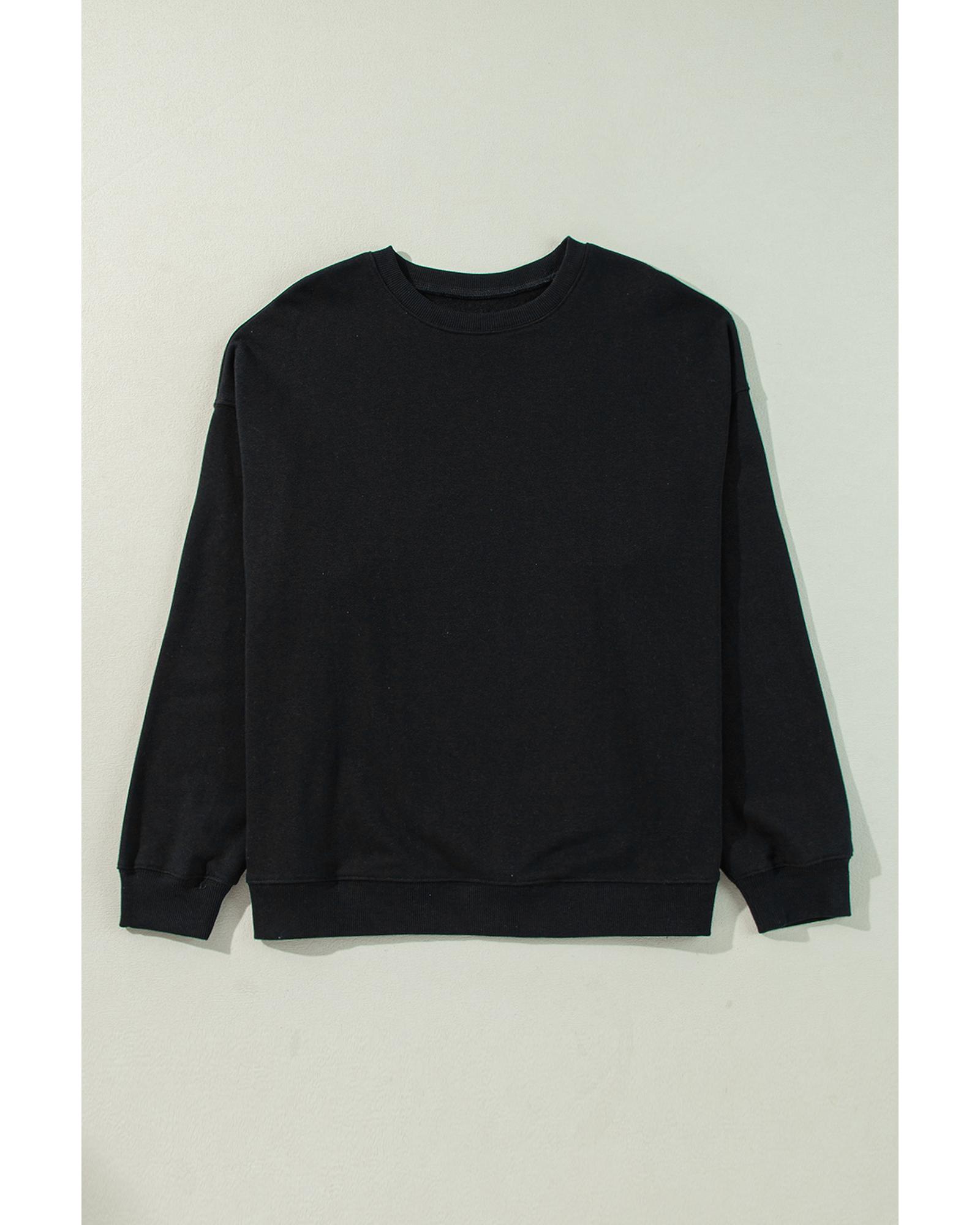 Black Solid Crew Neck Drop Shoulder Plus Size Sweatshirt – 1X