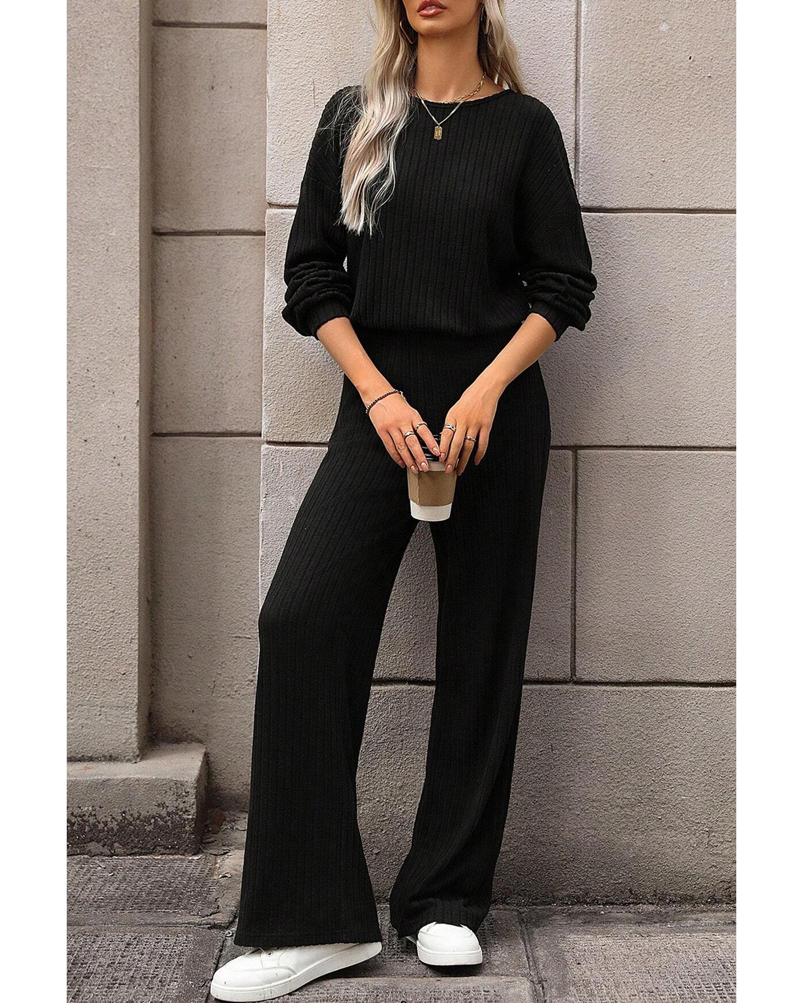 Black Solid Ribbed Knit Keyhole Back High Waist Jumpsuit – L