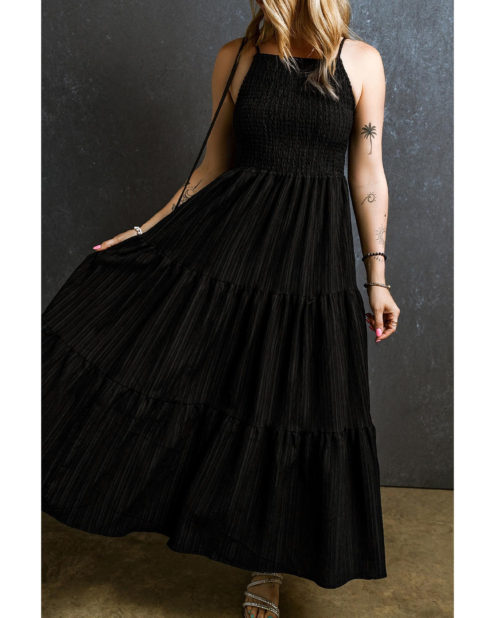 Black Spaghetti Straps Smocked Pleated Tiered Maxi Dress – M