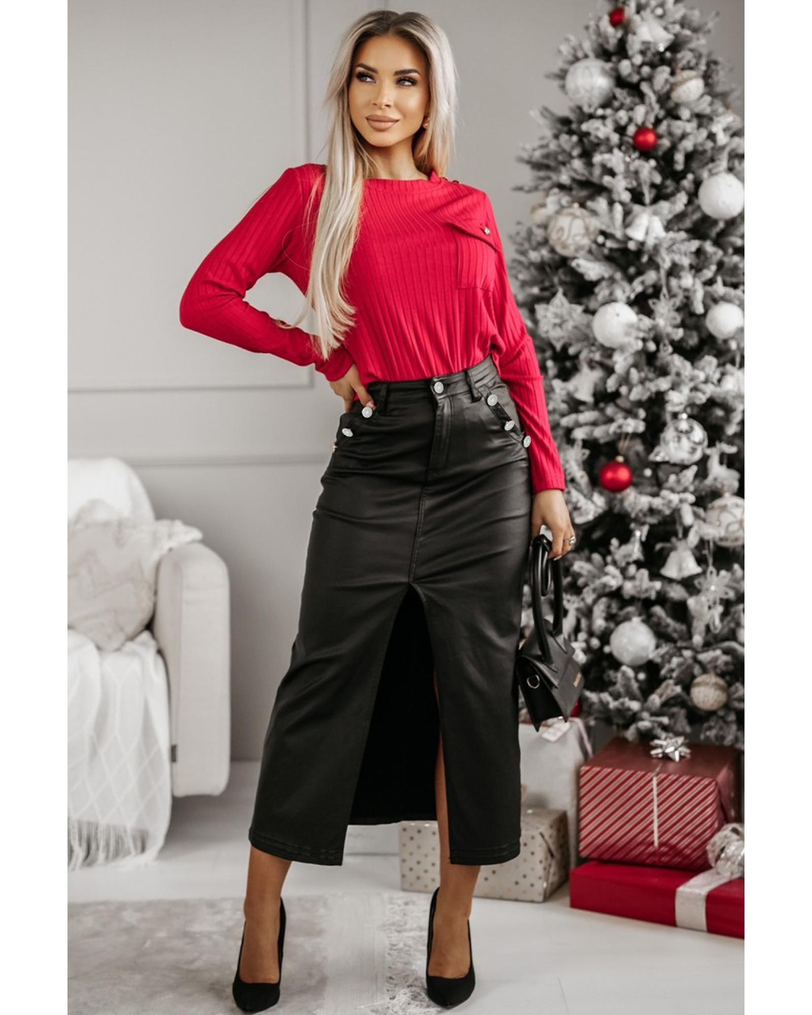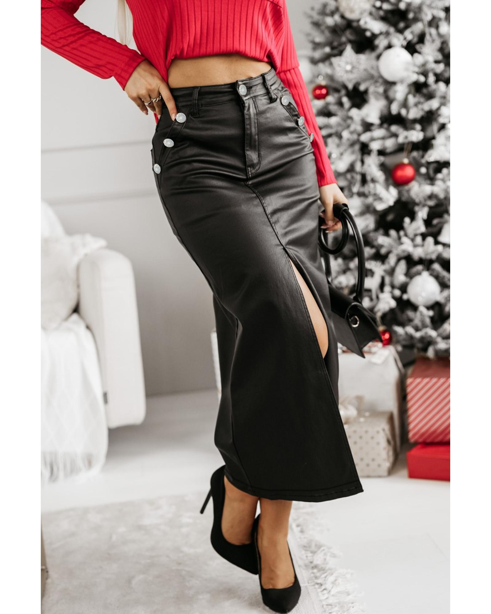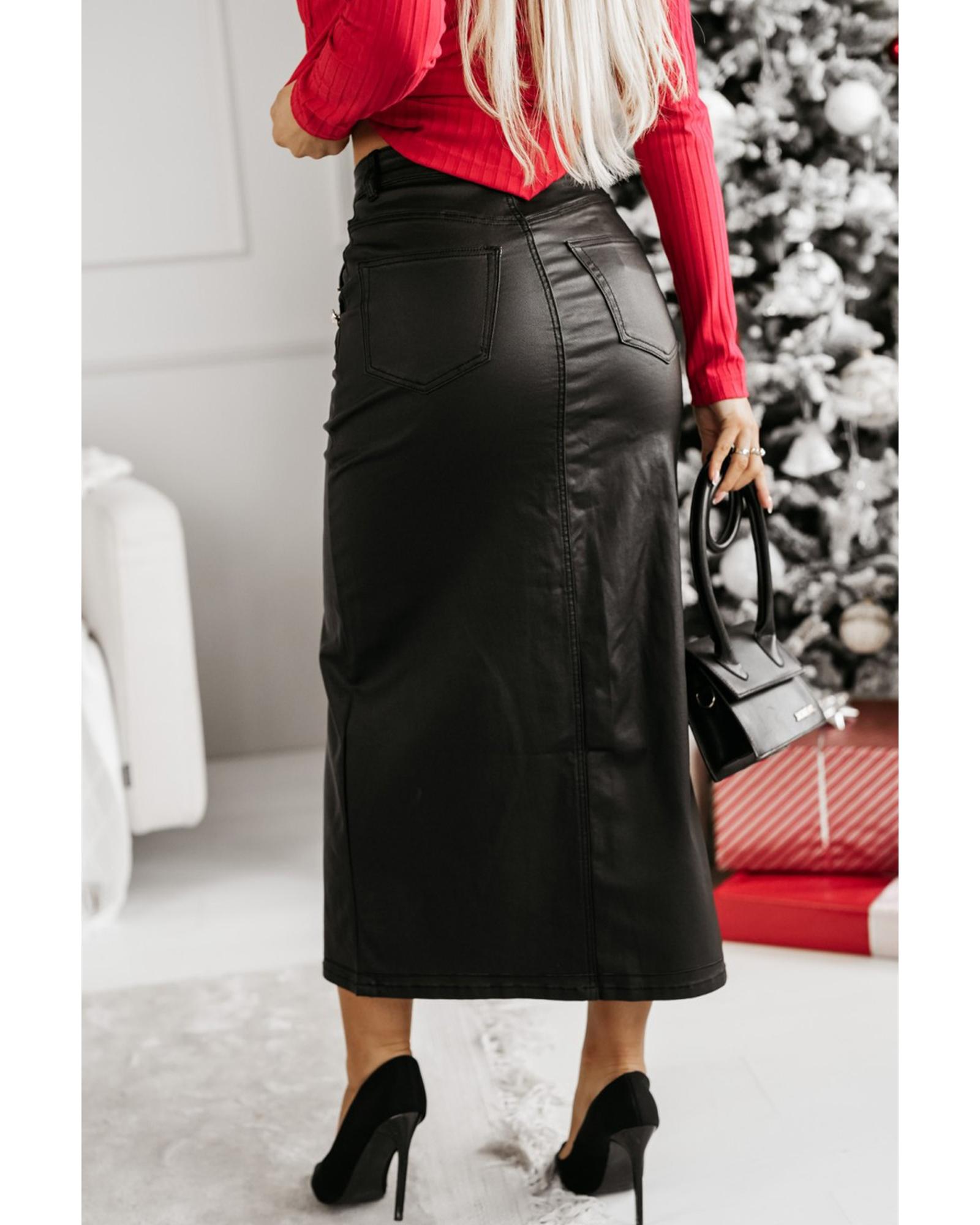 Black Split Front High Waist Slim Fit Midi Skirt – S