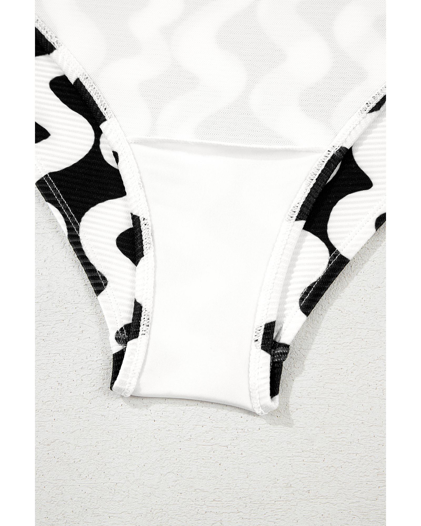 Black Stripe Bowknot Ricrac Print V Neck Low Back Cut One Piece Swimsuit – L