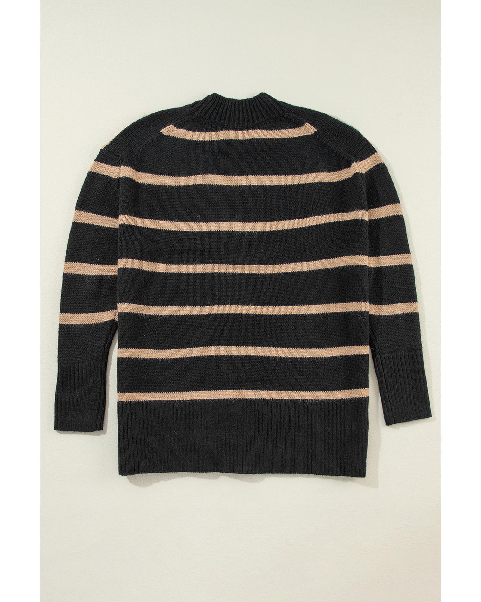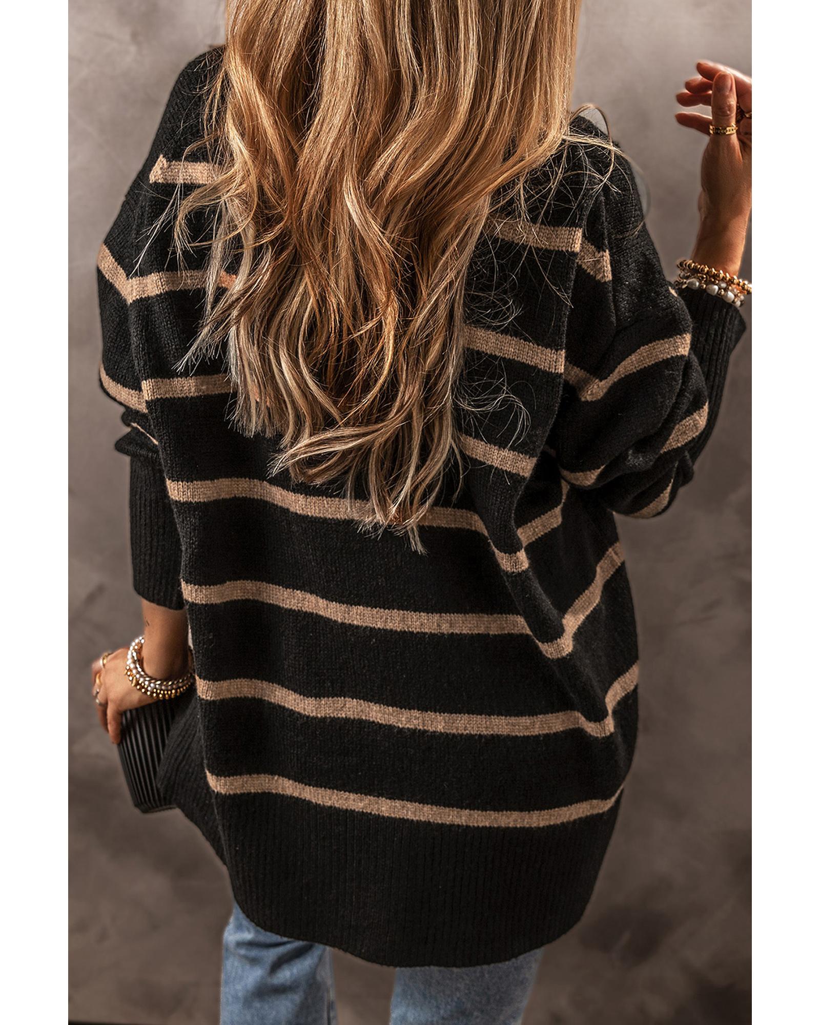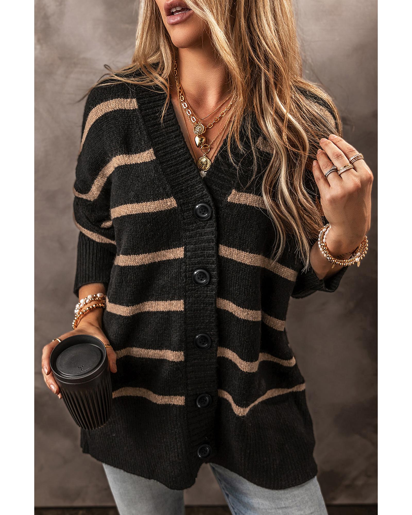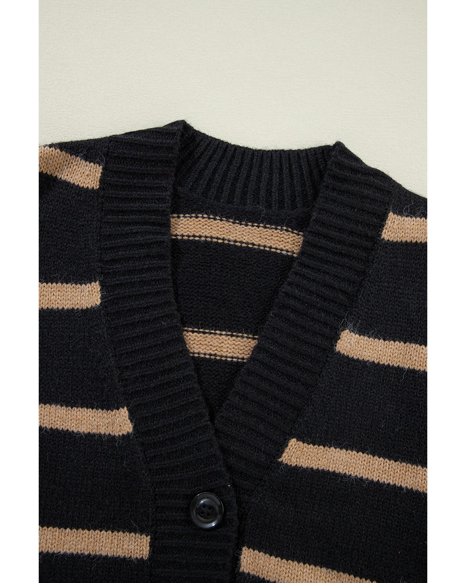 Black Stripe Buttoned V Neck Drop Shoulder Loose Cardigan – 2XL
