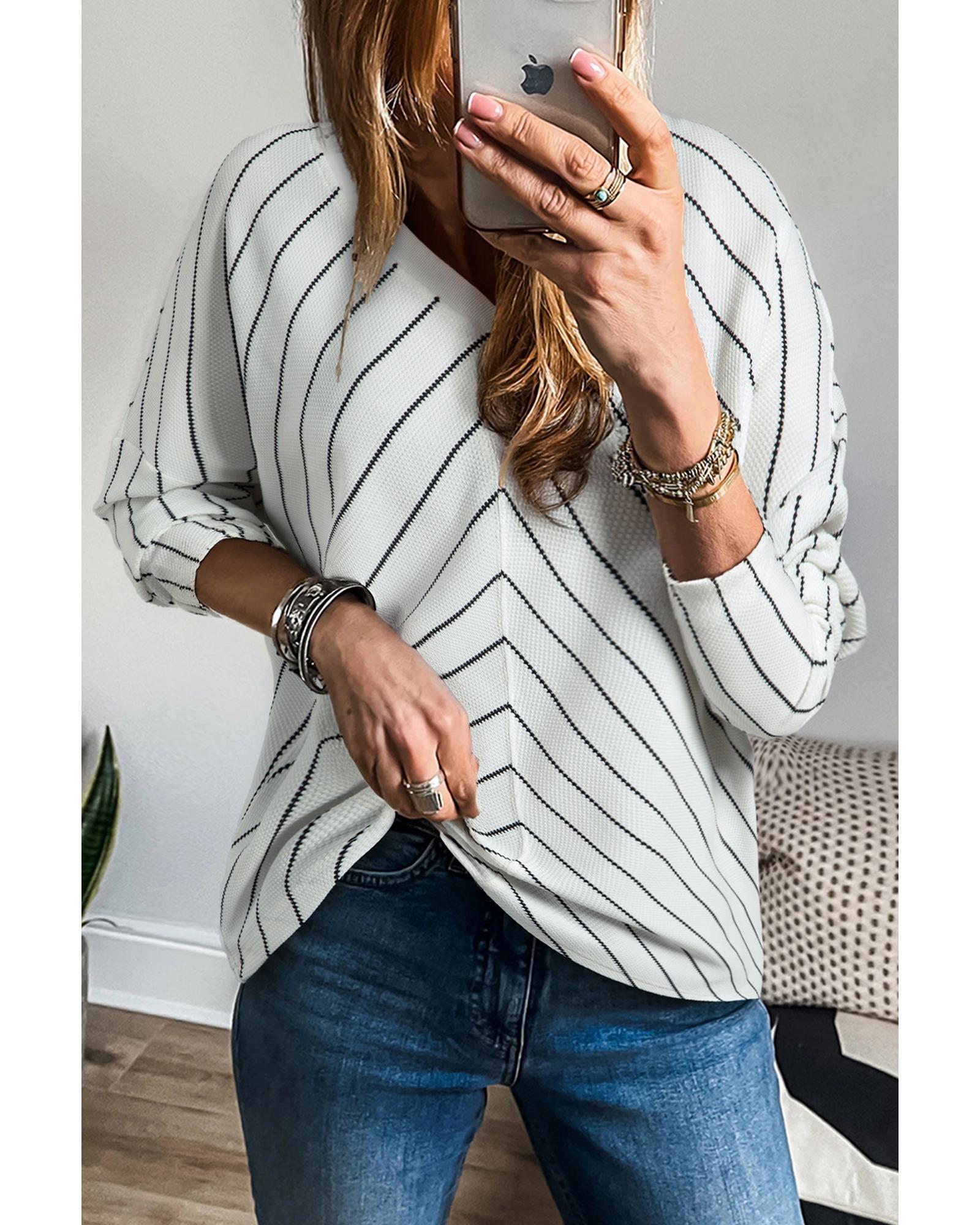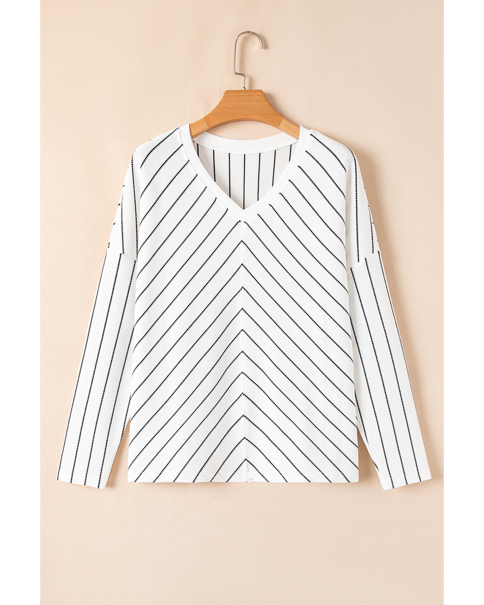 • Black Stripe Chevron Striped V Neck Long Sleeve Casual Top