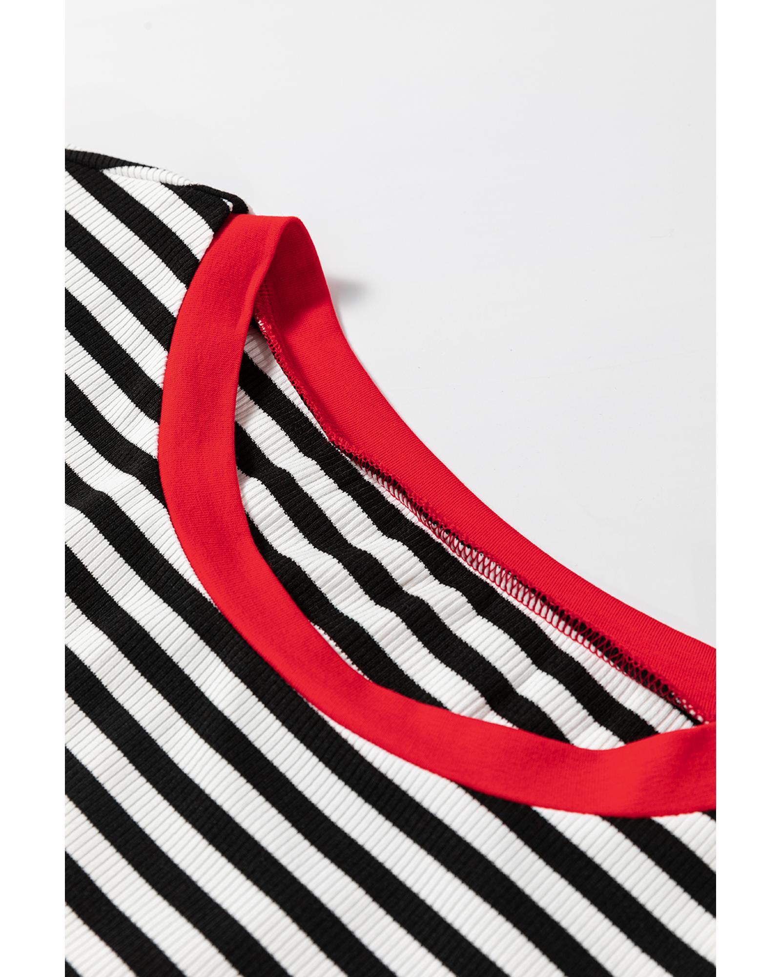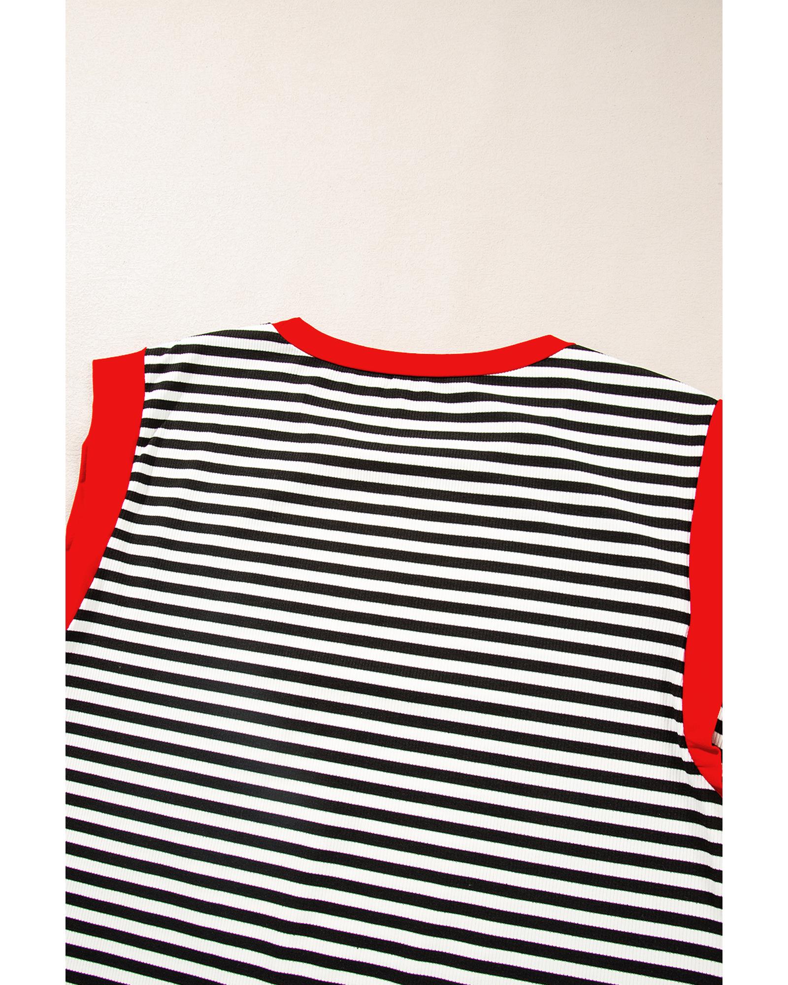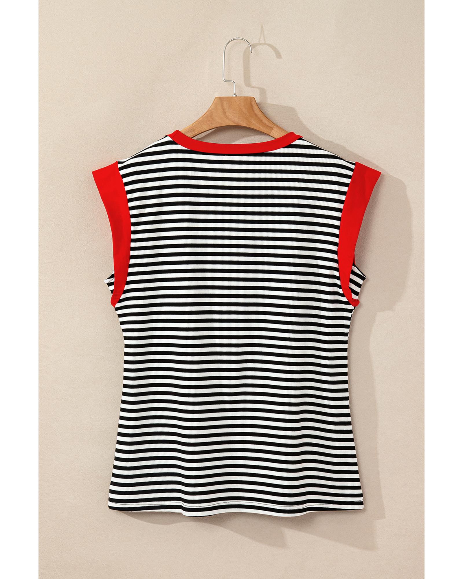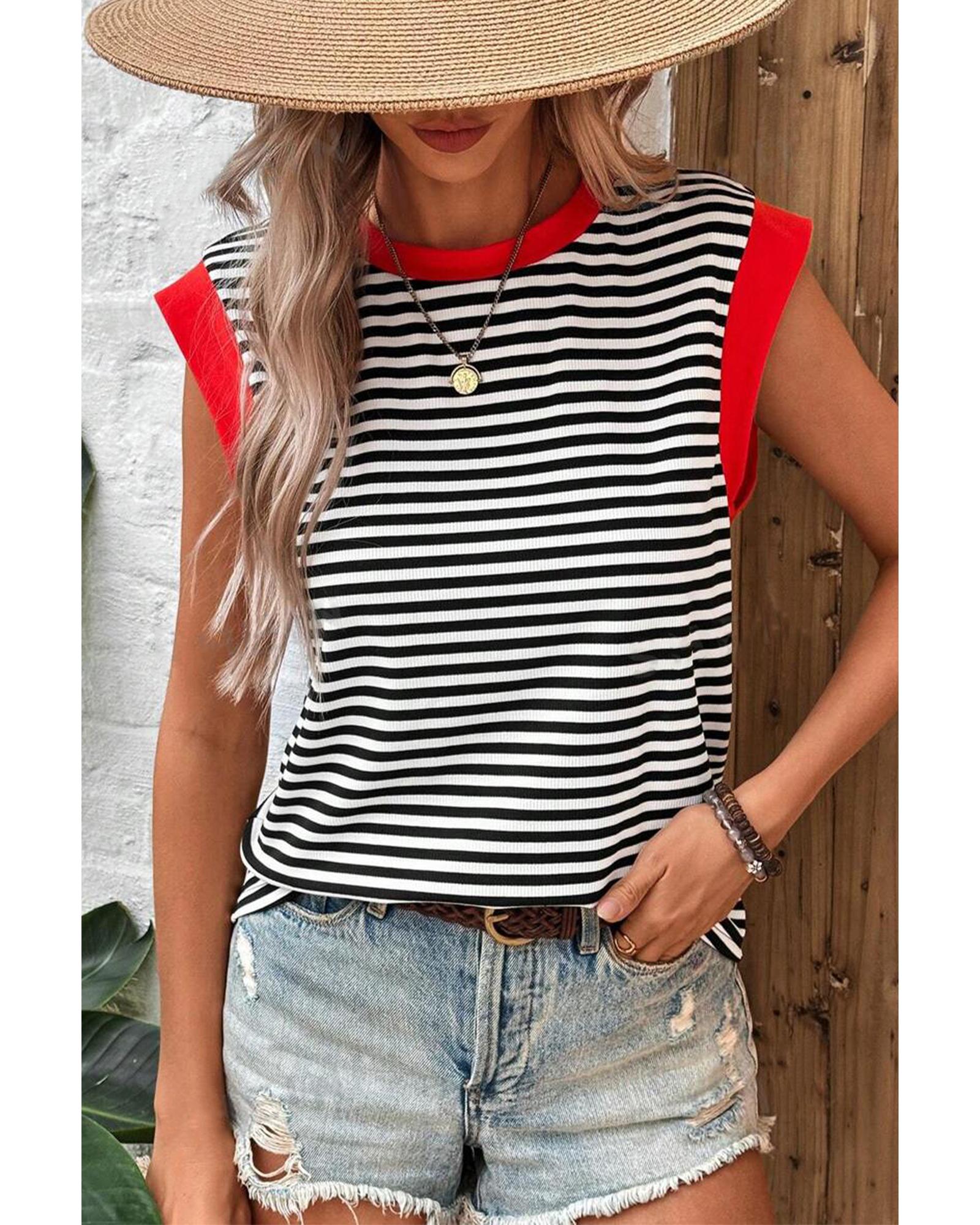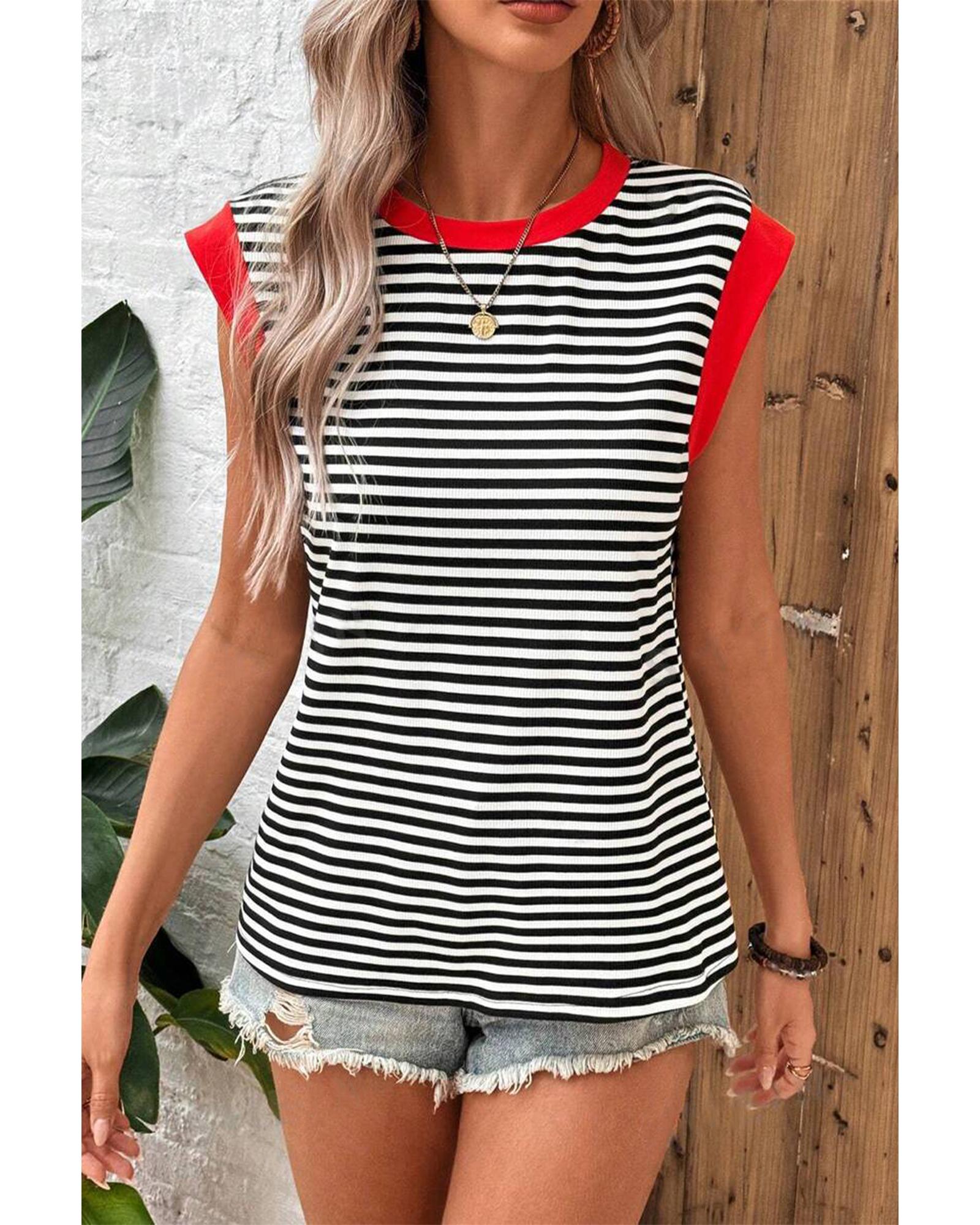 Black Stripe Colorblock Edge Round Neck Tank Top – XL