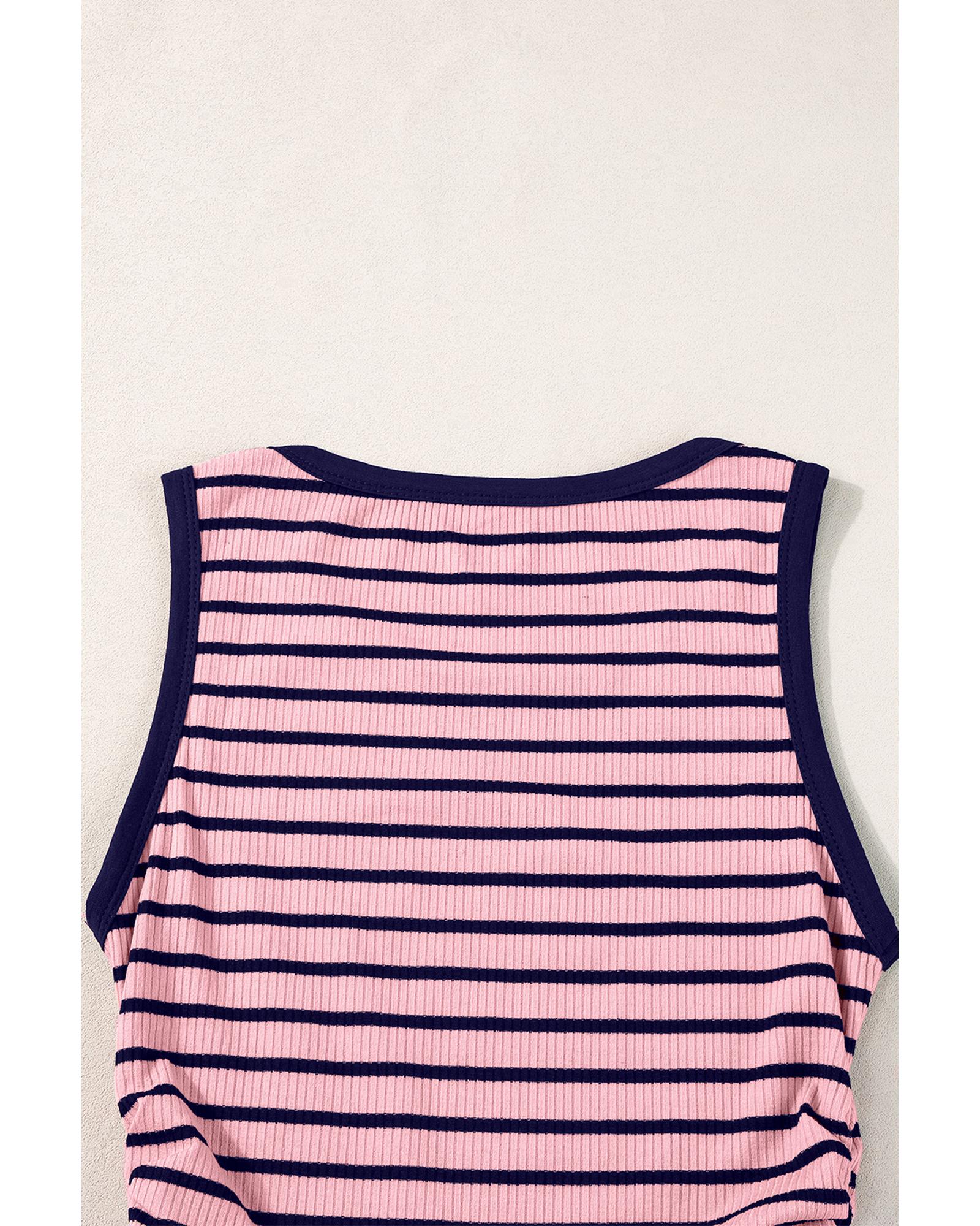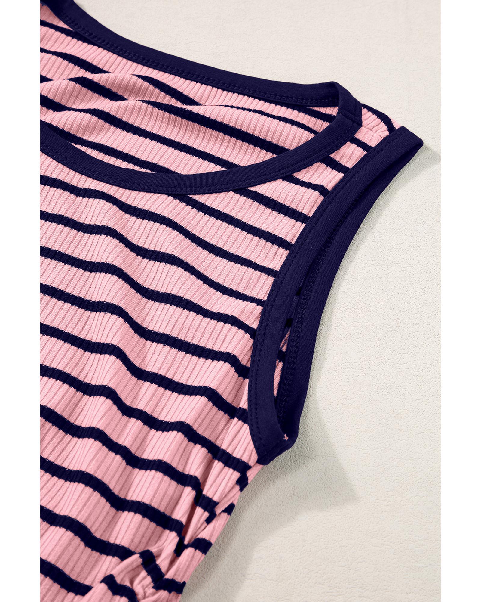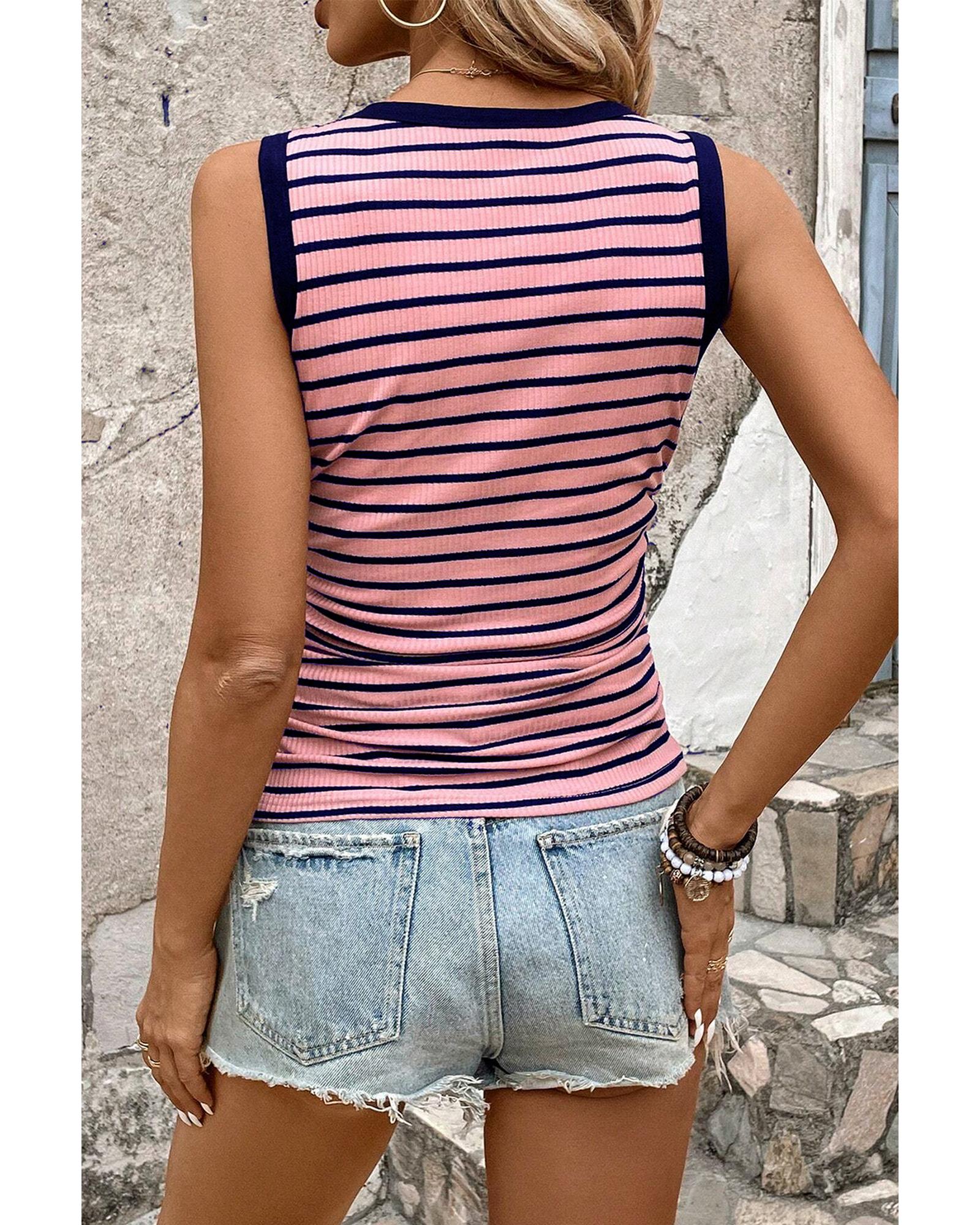 Black Stripe Contrast Round Neck Sleeveless Slim Top – S