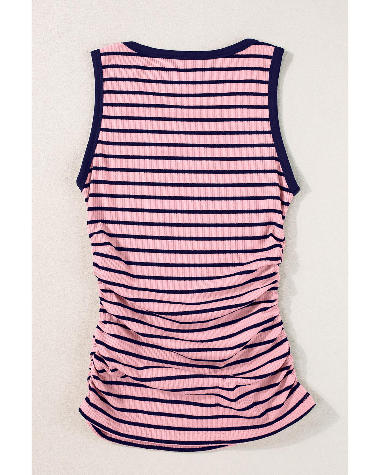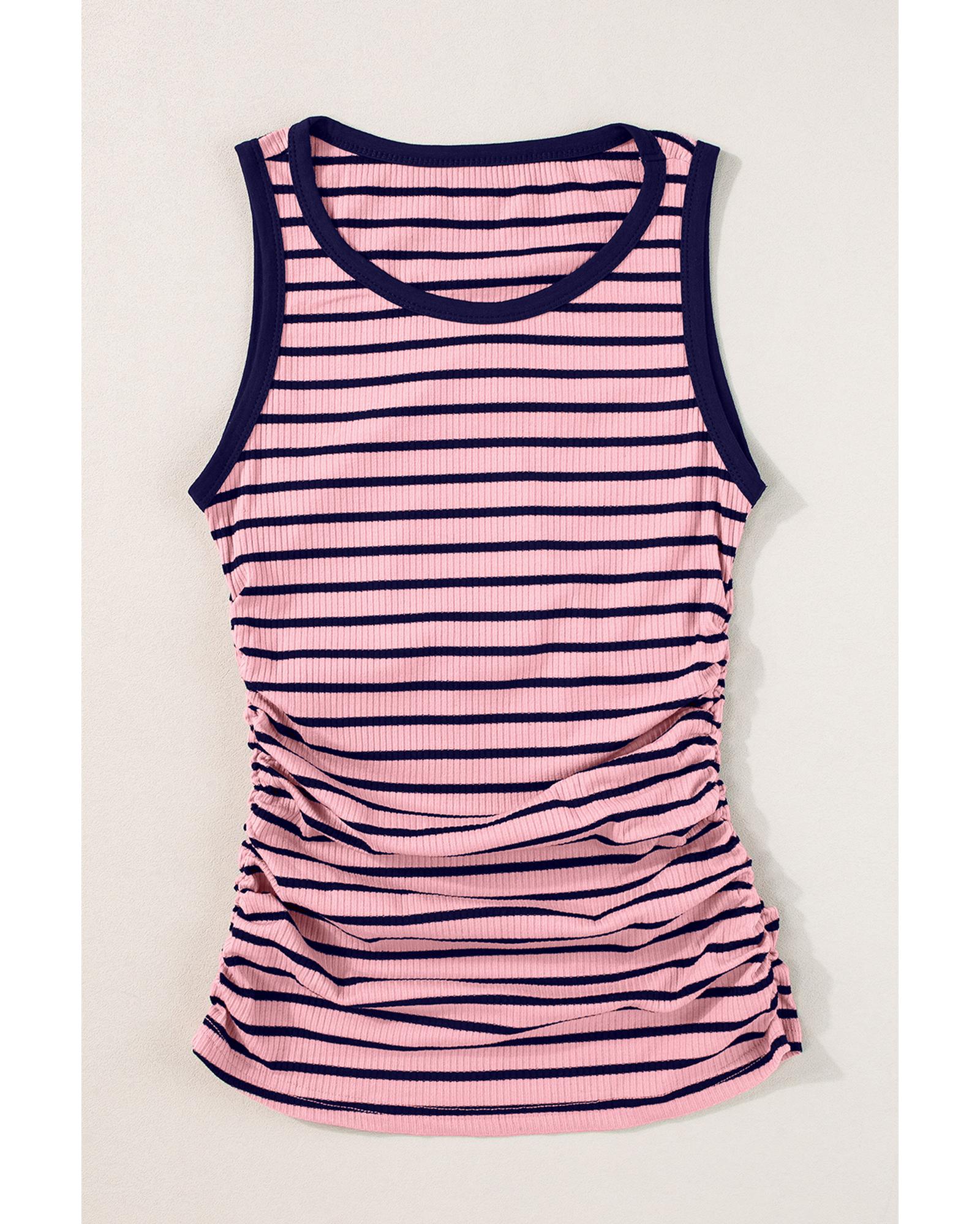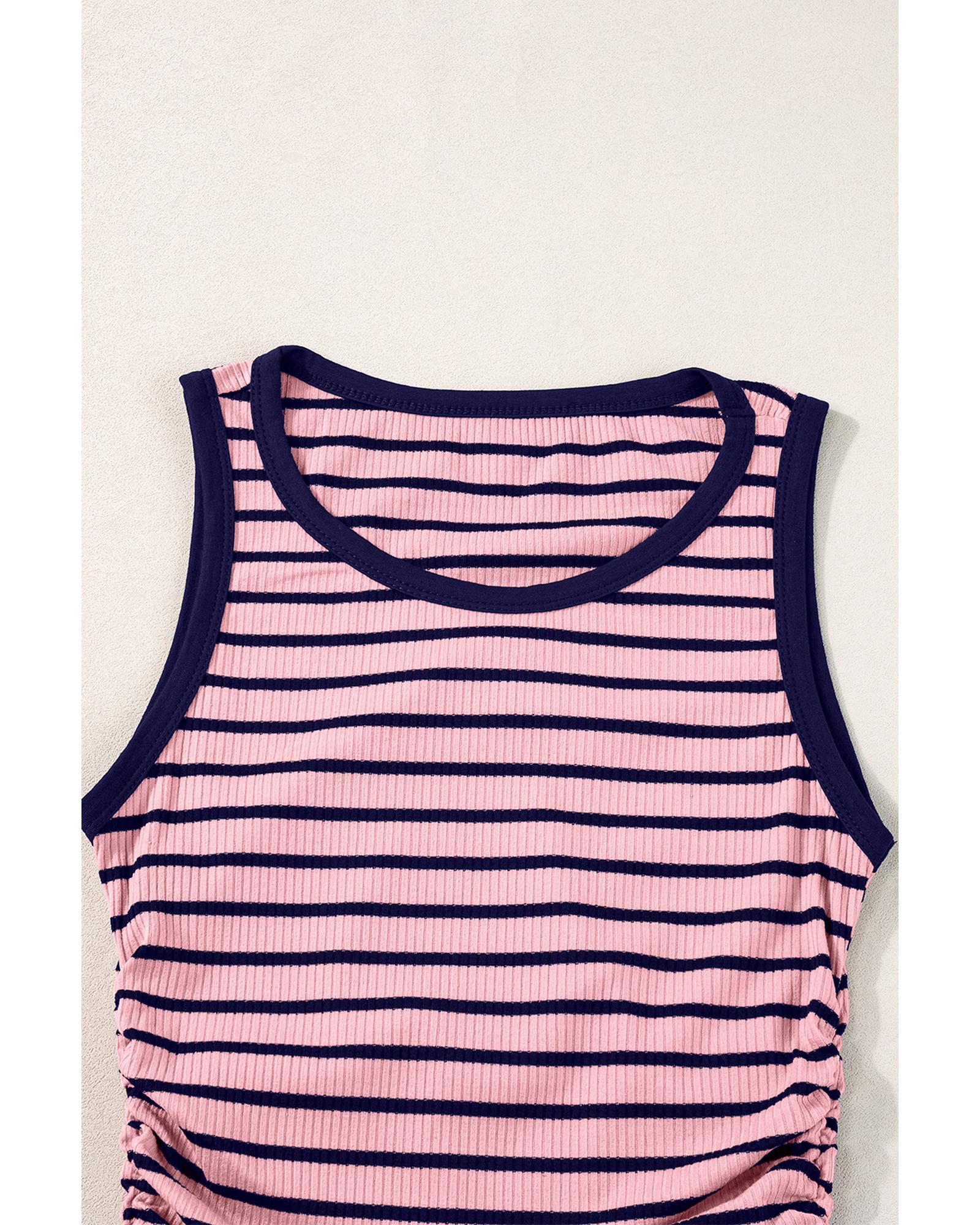 Black Stripe Contrast Round Neck Sleeveless Slim Top – S