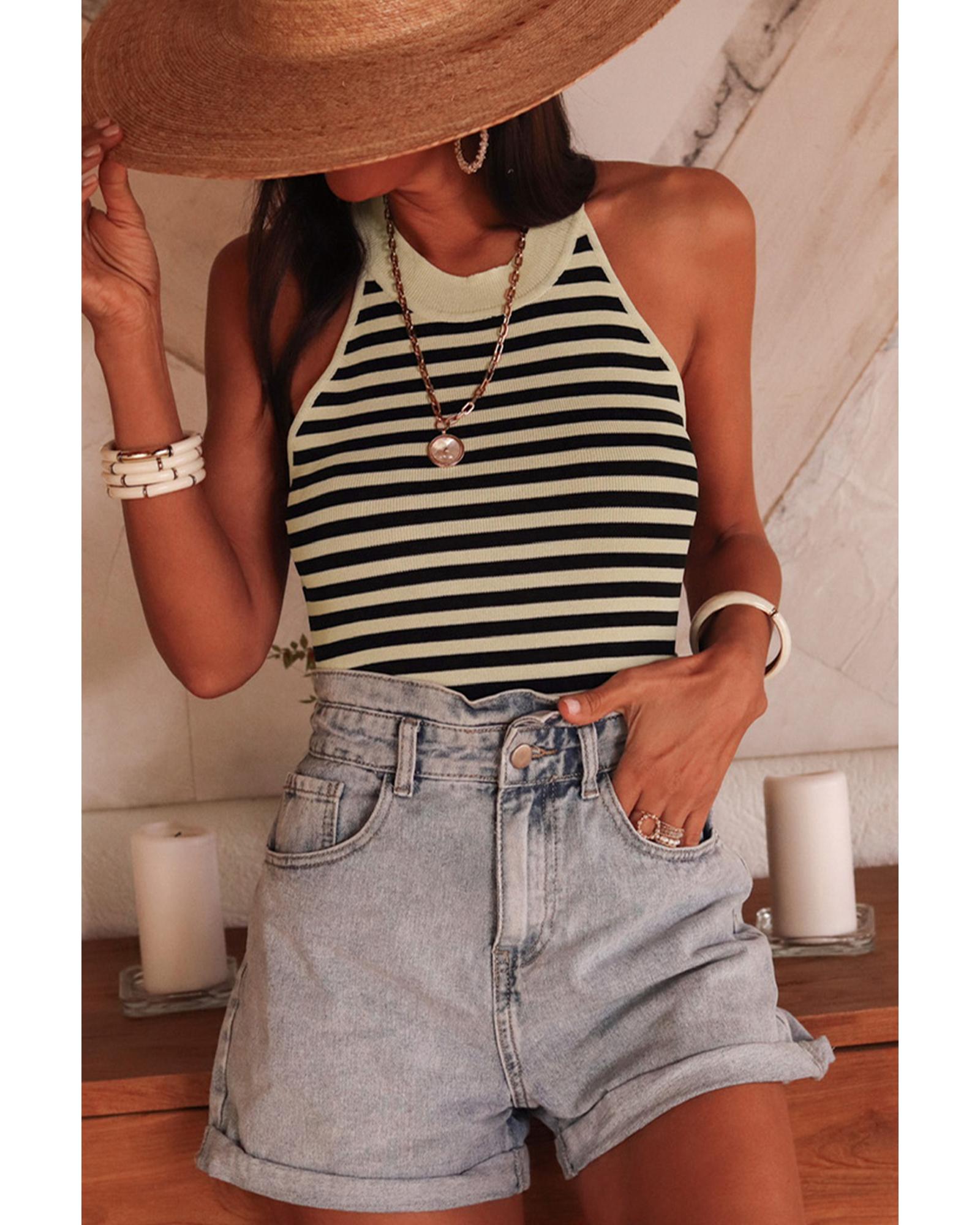 - Knitted vest with a timeless striped pattern