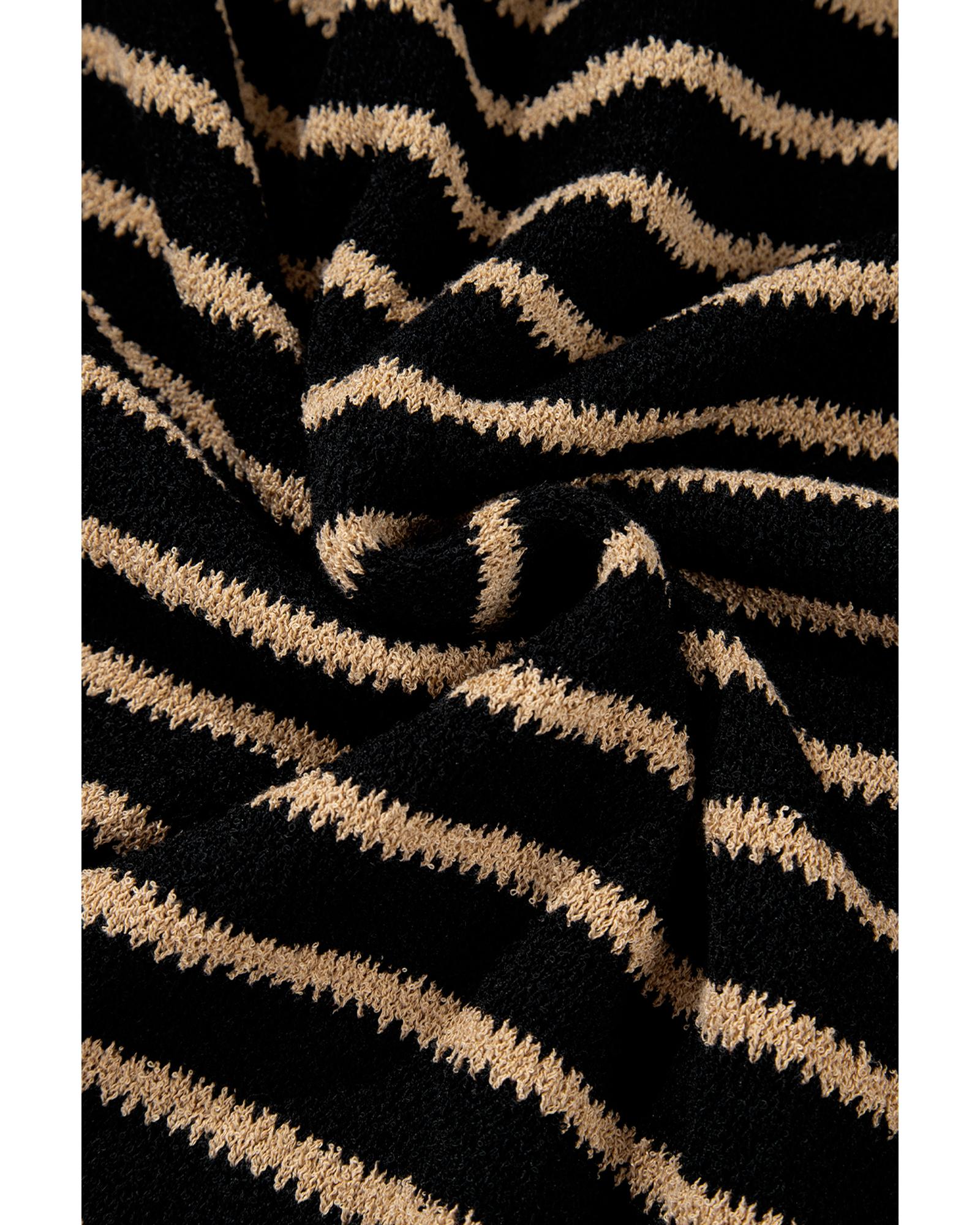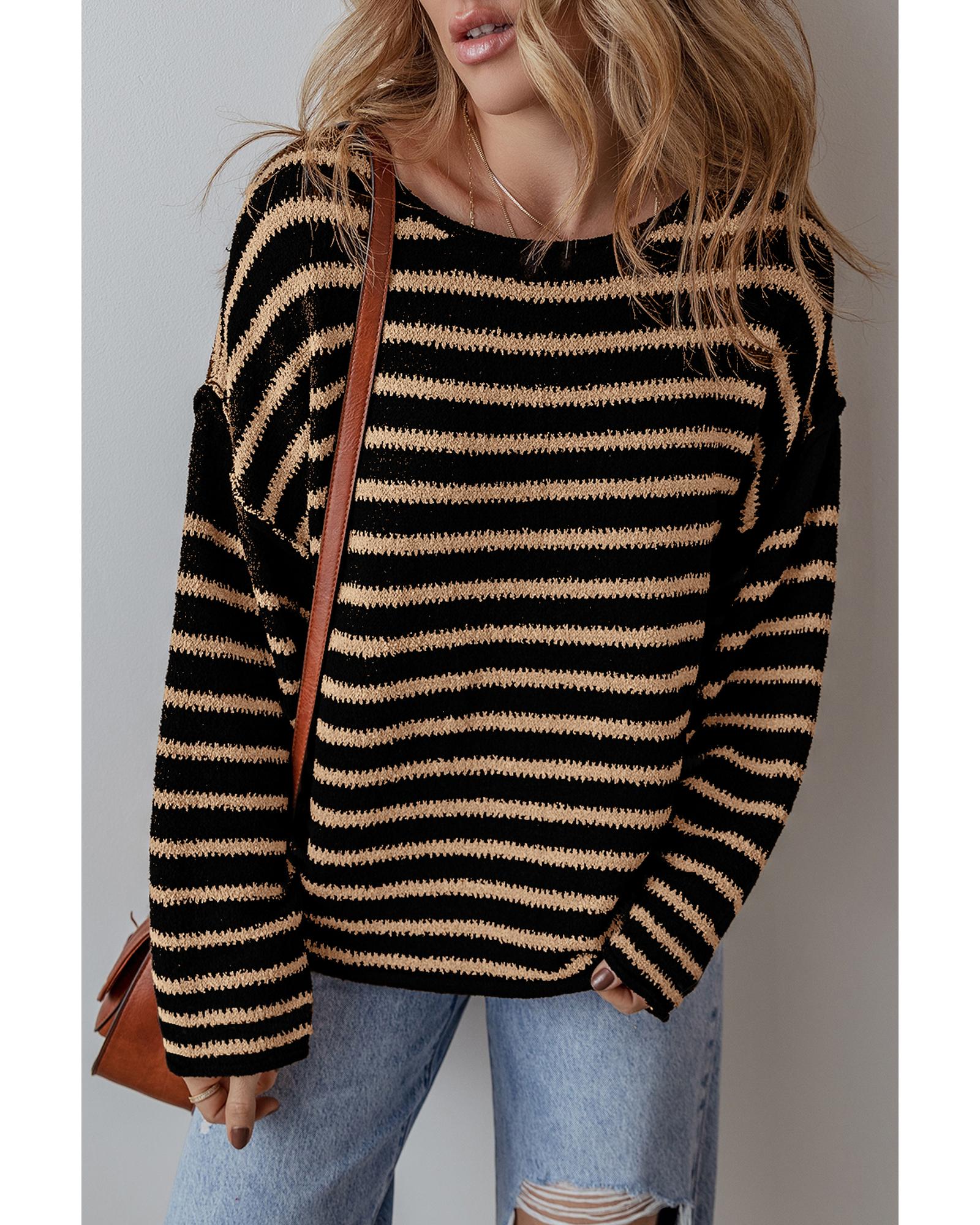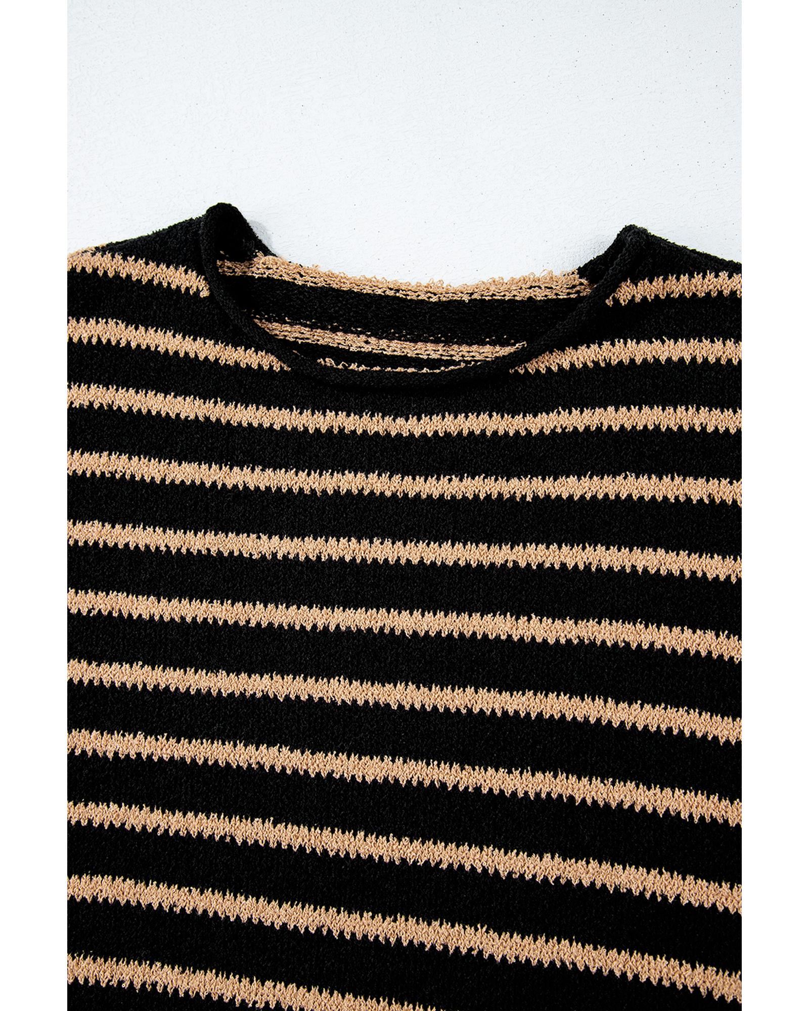 Black Stripe Drop Shoulder Round Neck Loose Sweater – L