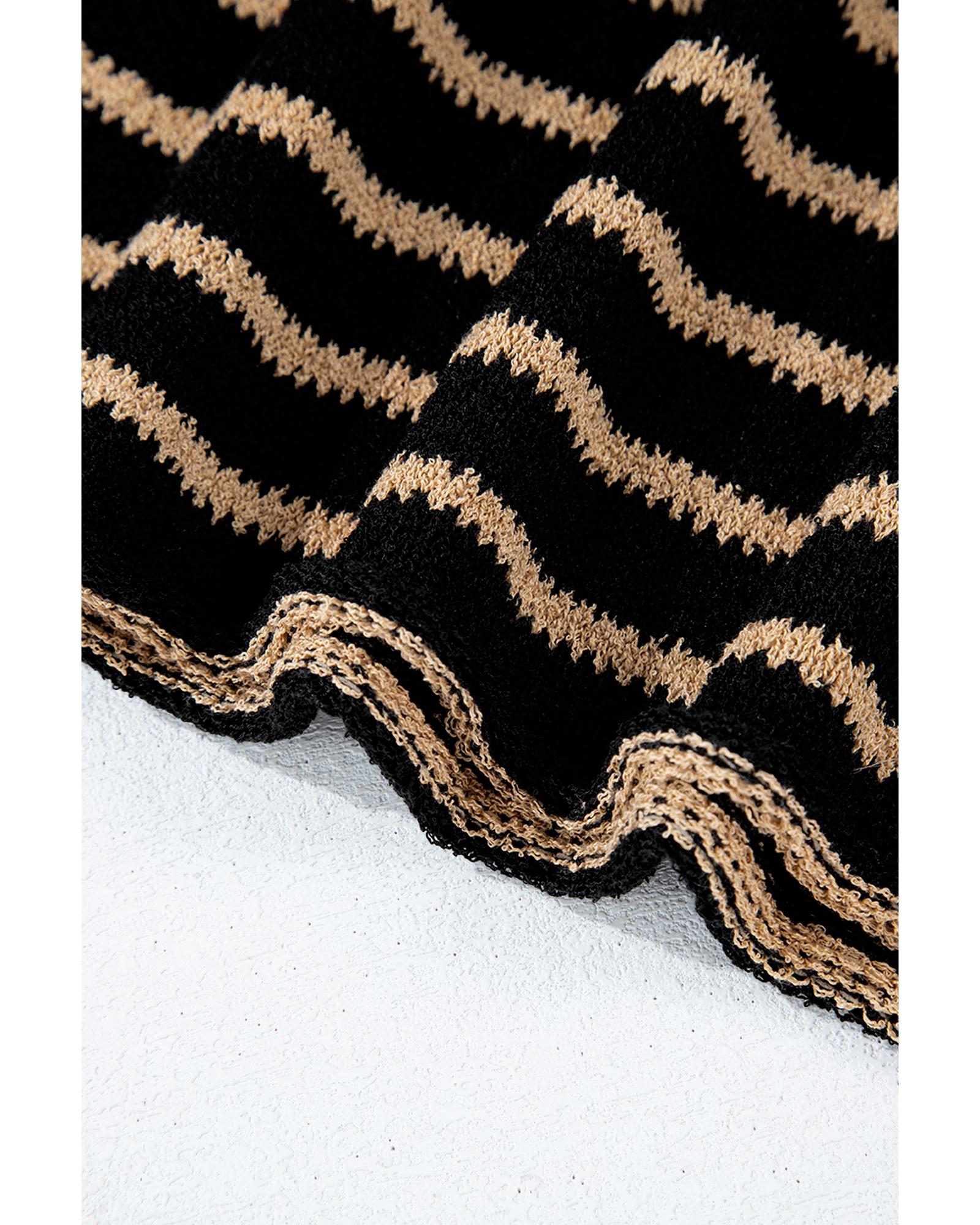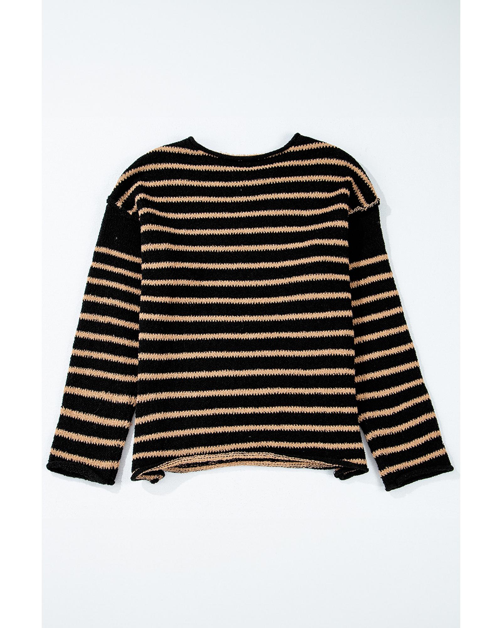 Black Stripe Drop Shoulder Round Neck Loose Sweater – XL