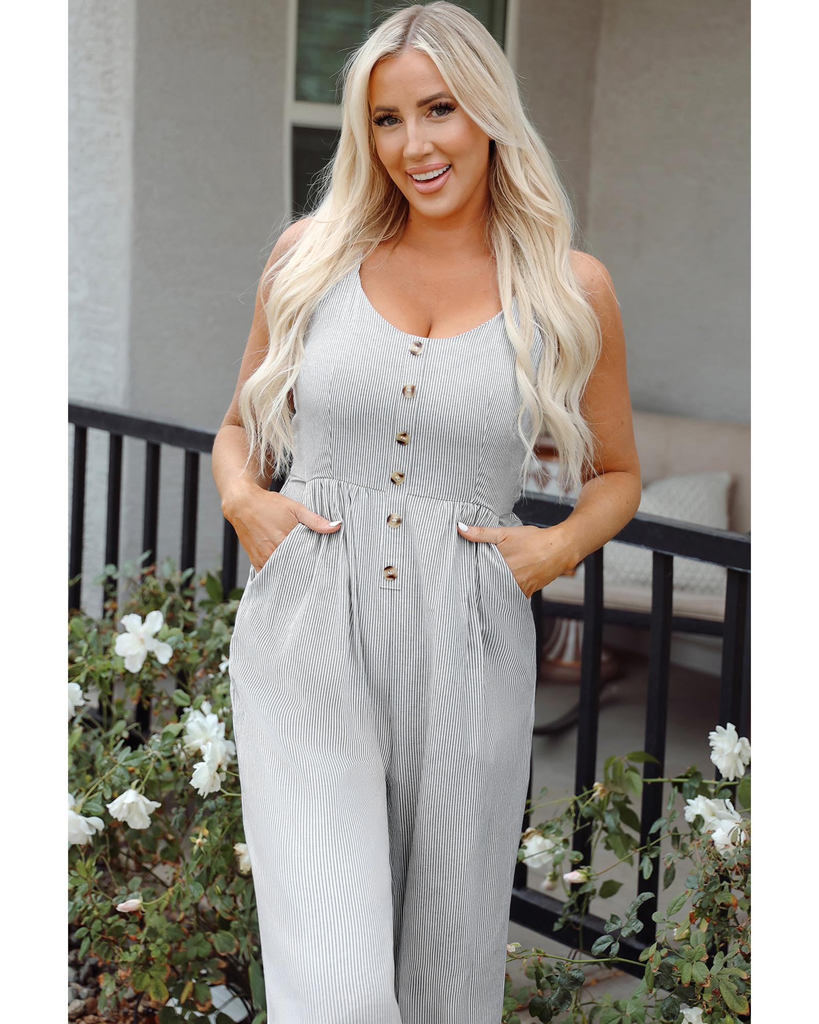 Black Stripe Half Buttoned Sleeveless Wide Leg Jumpsuit – S