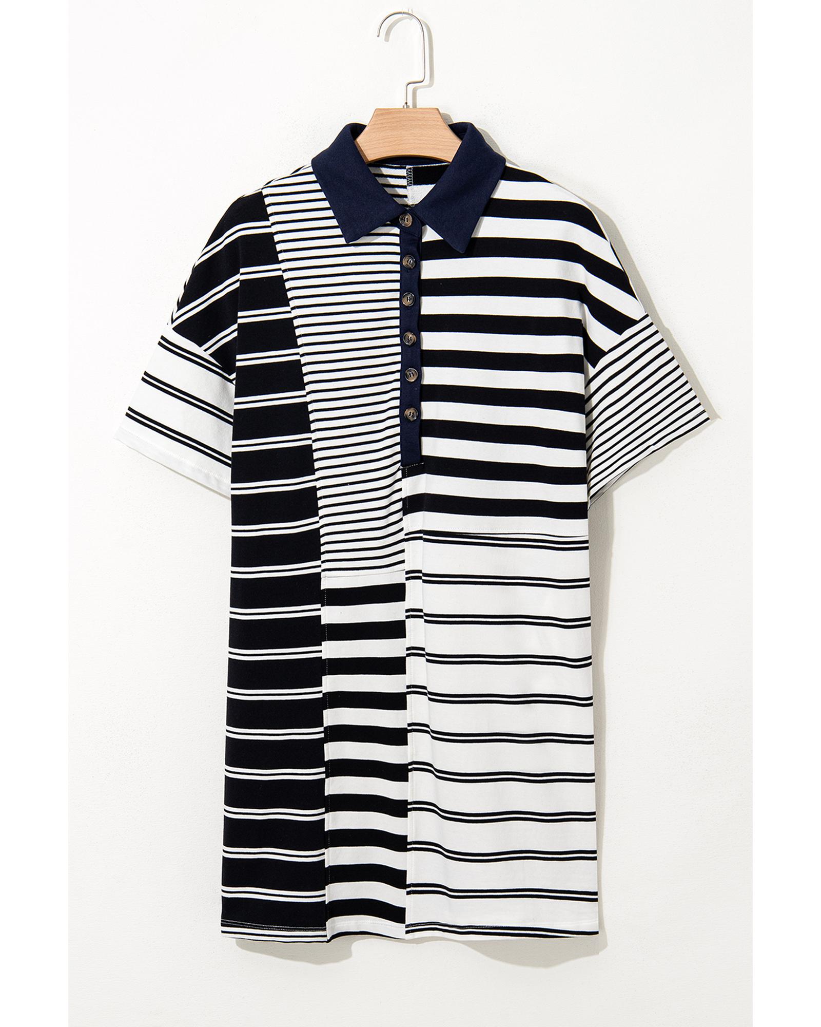 Black Stripe Half Placket Polo T Shirt Dress – L