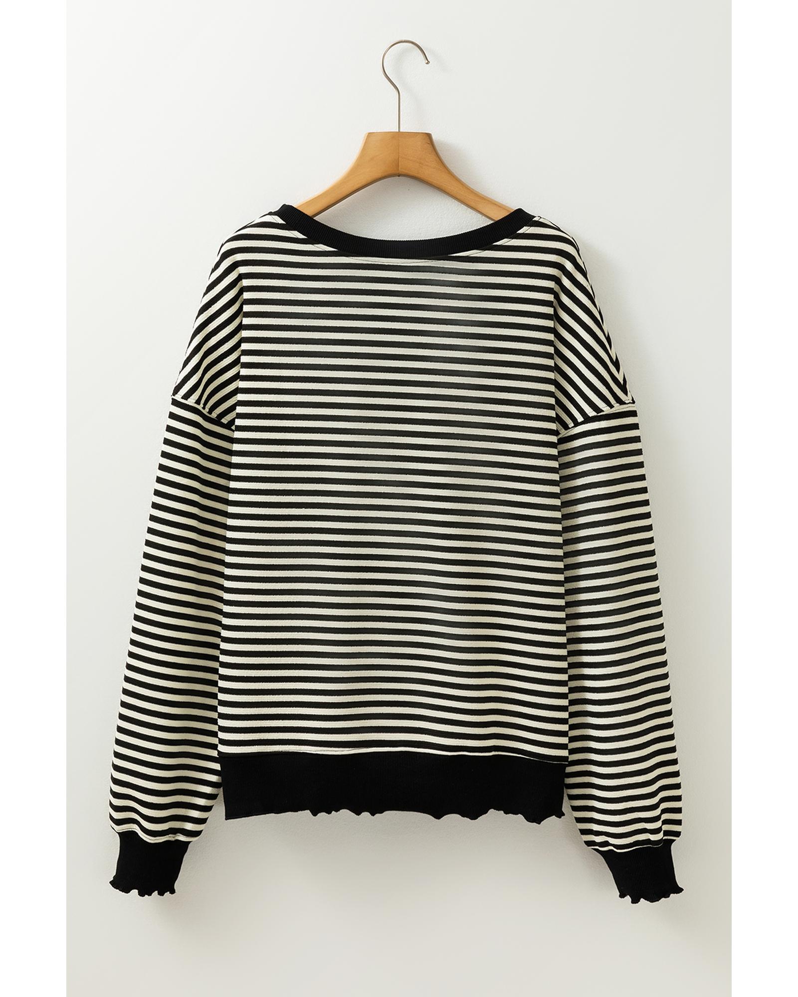 - Black Stripe Loose Drop Shoulder Long Sleeve Top