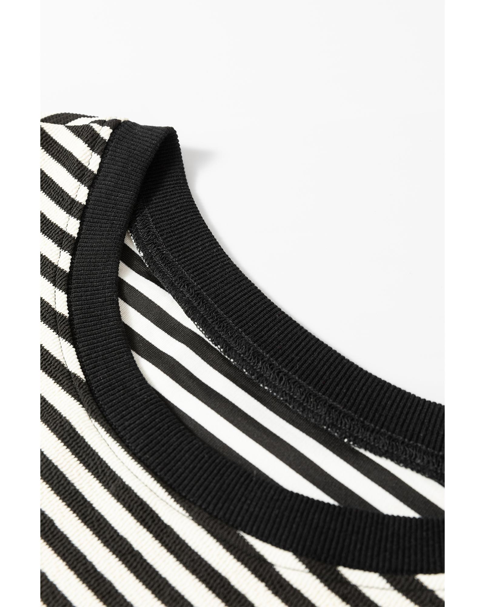 - Black Stripe Loose Drop Shoulder Long Sleeve Top